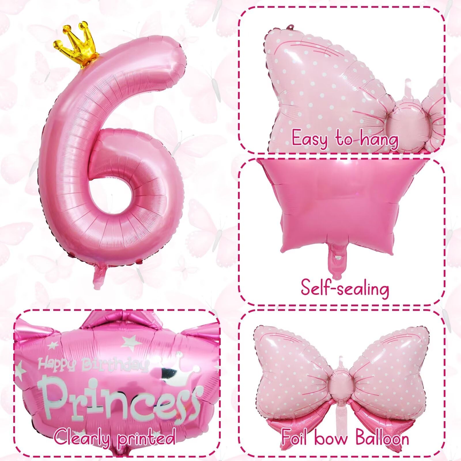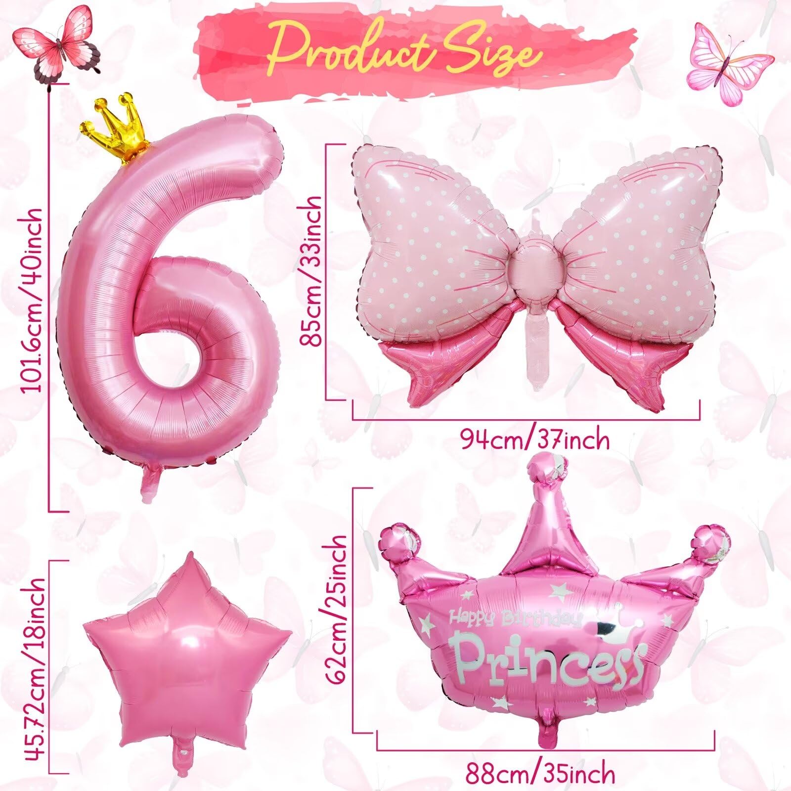 View comparePink 6Th Birthday Decorations, Pink 6Th Birthday Balloon Set With 40 Inch Pink Number 6, Large Helium Foil Mylar Princess Crown Balloon, Pink Bow Foil Balloons For Girls Birthday Party Decoration
