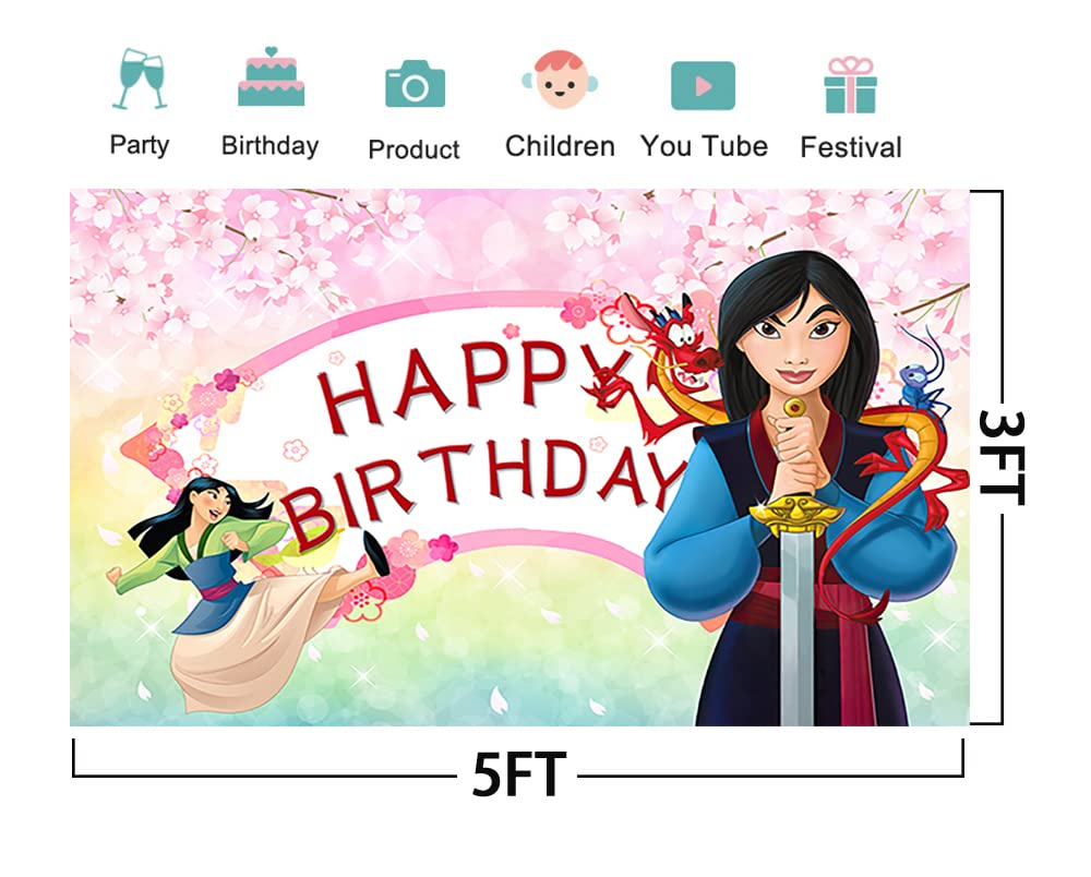 View comparePink Backdrop for Princess Birthday Party Decorations Mulan Background for Baby Shower Party Cake Table Decorations Supplies Mul