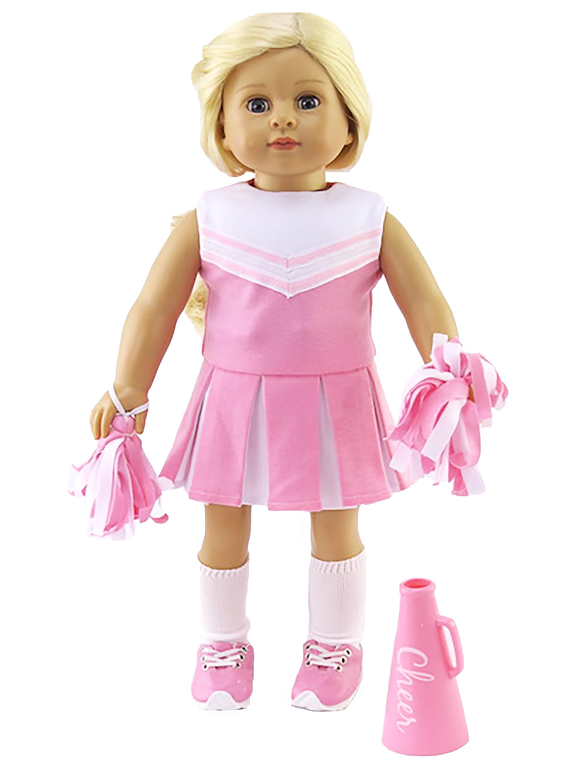 Pink Cheerleader Uniform with Shoes and Accessories 6PCS Outfit for 18-Inch Dolls | enhanced Quality & Trendy Design | Dolls Clothes | Outfit Fashions for Dolls for Popular Brands