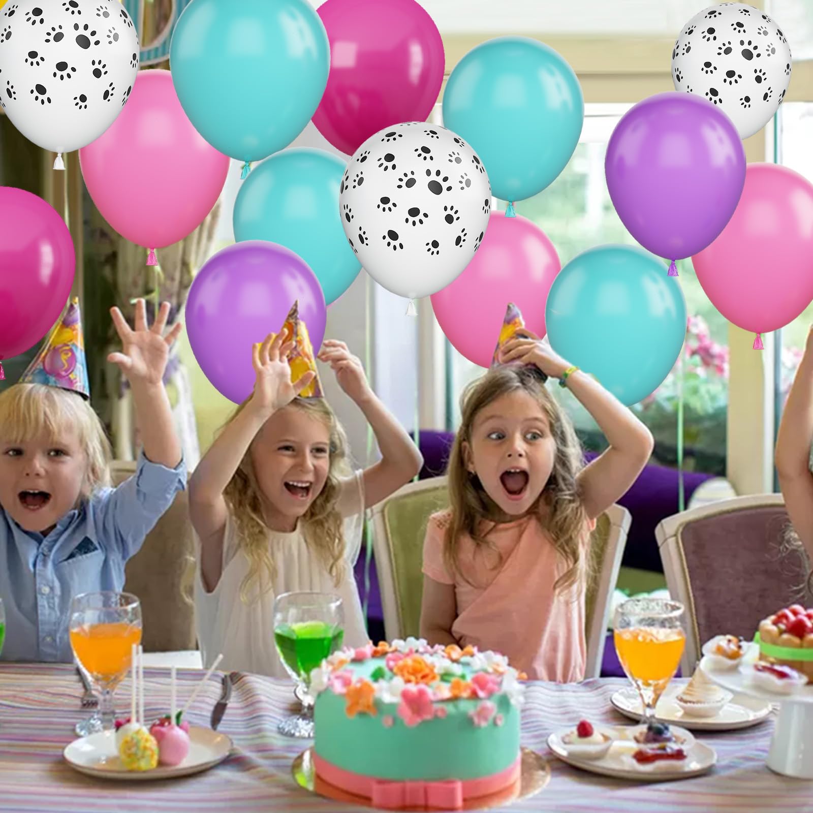Pink Teal Purple Paw Balloons, 12 Inch Paw Balloons With Hot Pink Teal Purple Dog Paw Printed Balloons Metallic Rose Balloons Fo