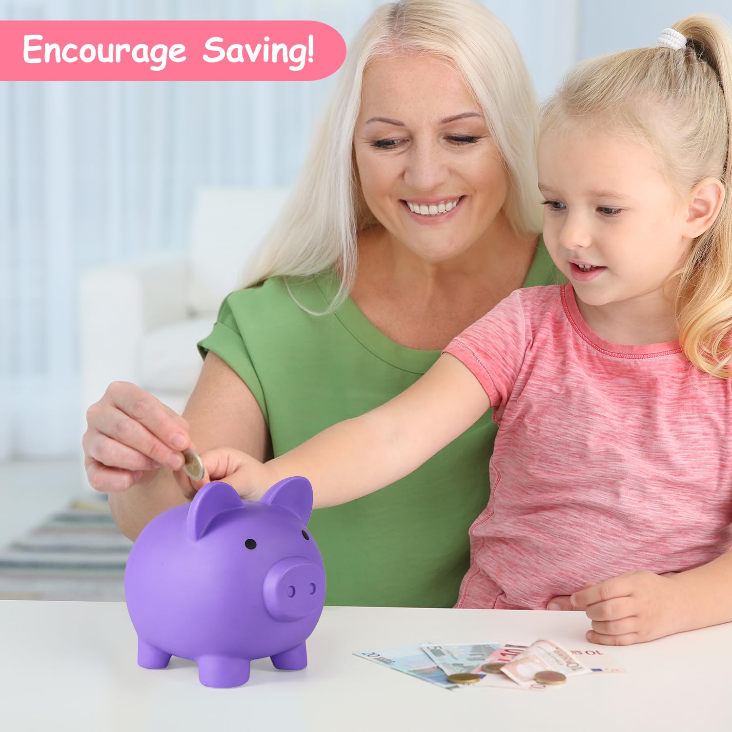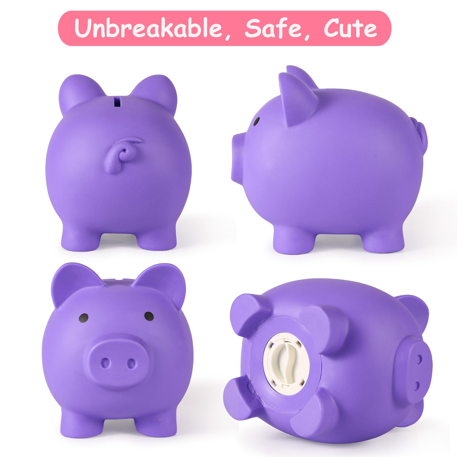 Pjdrllc Piggy Bank, Unbreakable Plastic Money Bank, Coin Bank For Girls And Boys, Medium Size Piggy Banks, Practical Gifts For Birthday, Easter, Christmas (Purple)