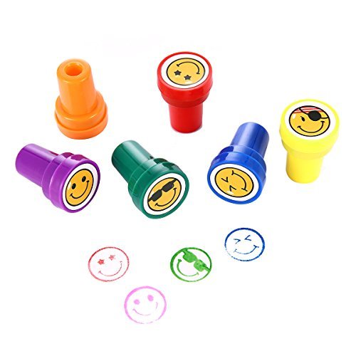 - Q: How many stamps are included in the set? A: This set includes 6 self-inking stamps, each featuring a unique goofy smile or silly face design, along with assorted ink colors.