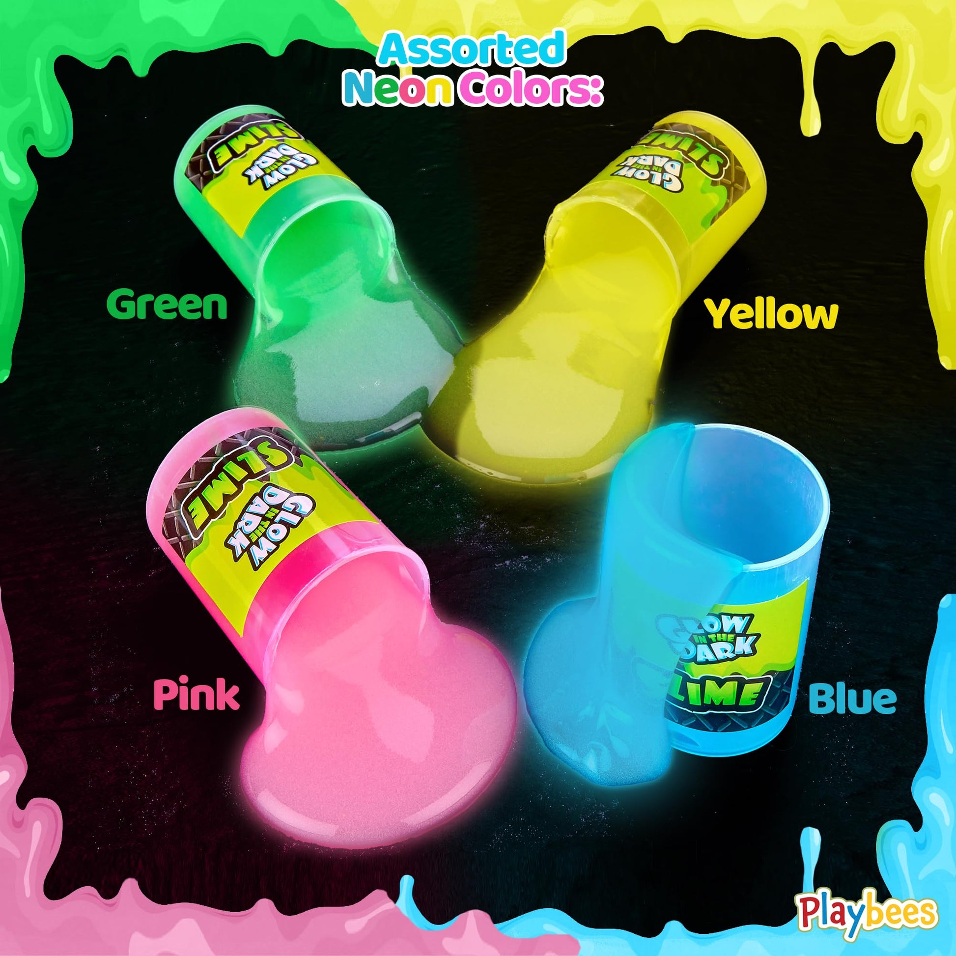 Playbees Glow In The Dark Slime - 12 Pack - Neon Blue, Green, Pink, Yellow Colors - Glowing Slime Kit For Kids - Party Favors, G