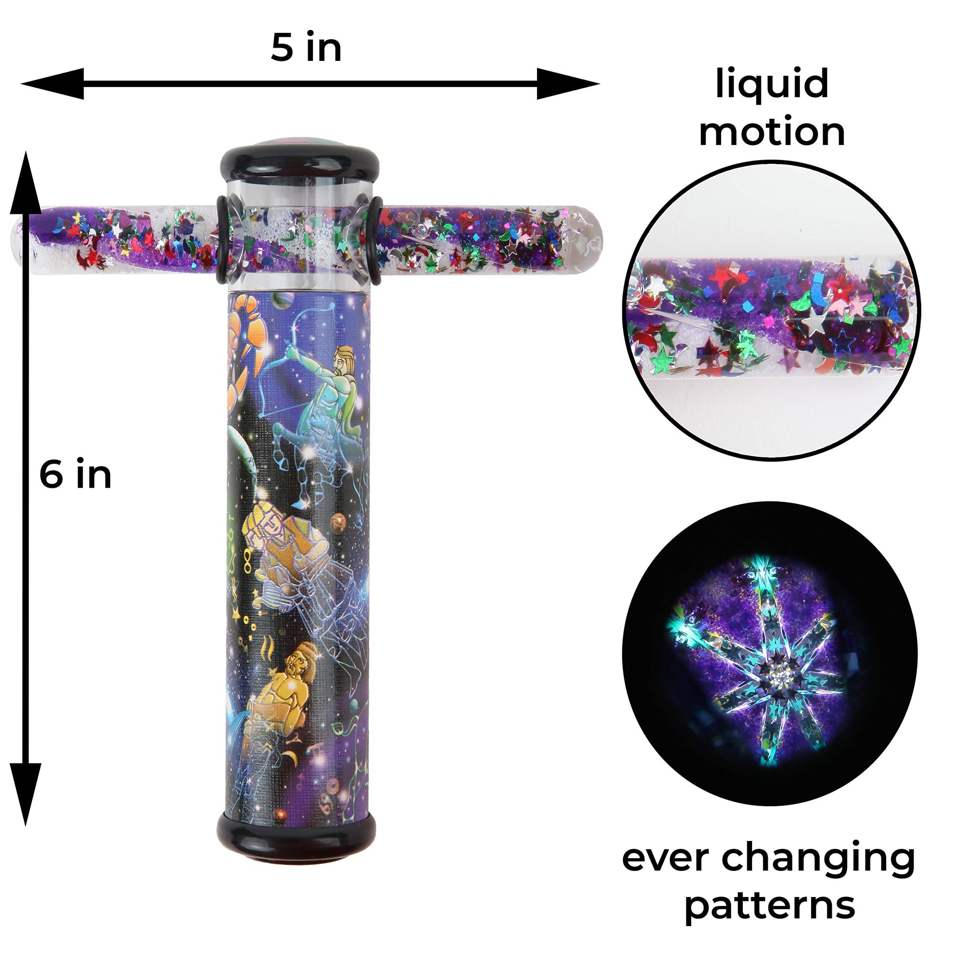 - Q: What is the size of the kaleidoscope and glitter wand? A: The Playlearn Space Design Kaleidoscope measures 6 inches in length, paired with a 5-inch spiral glitter wand. This size makes it easy for children to handle while still providing a captivating visual experience.