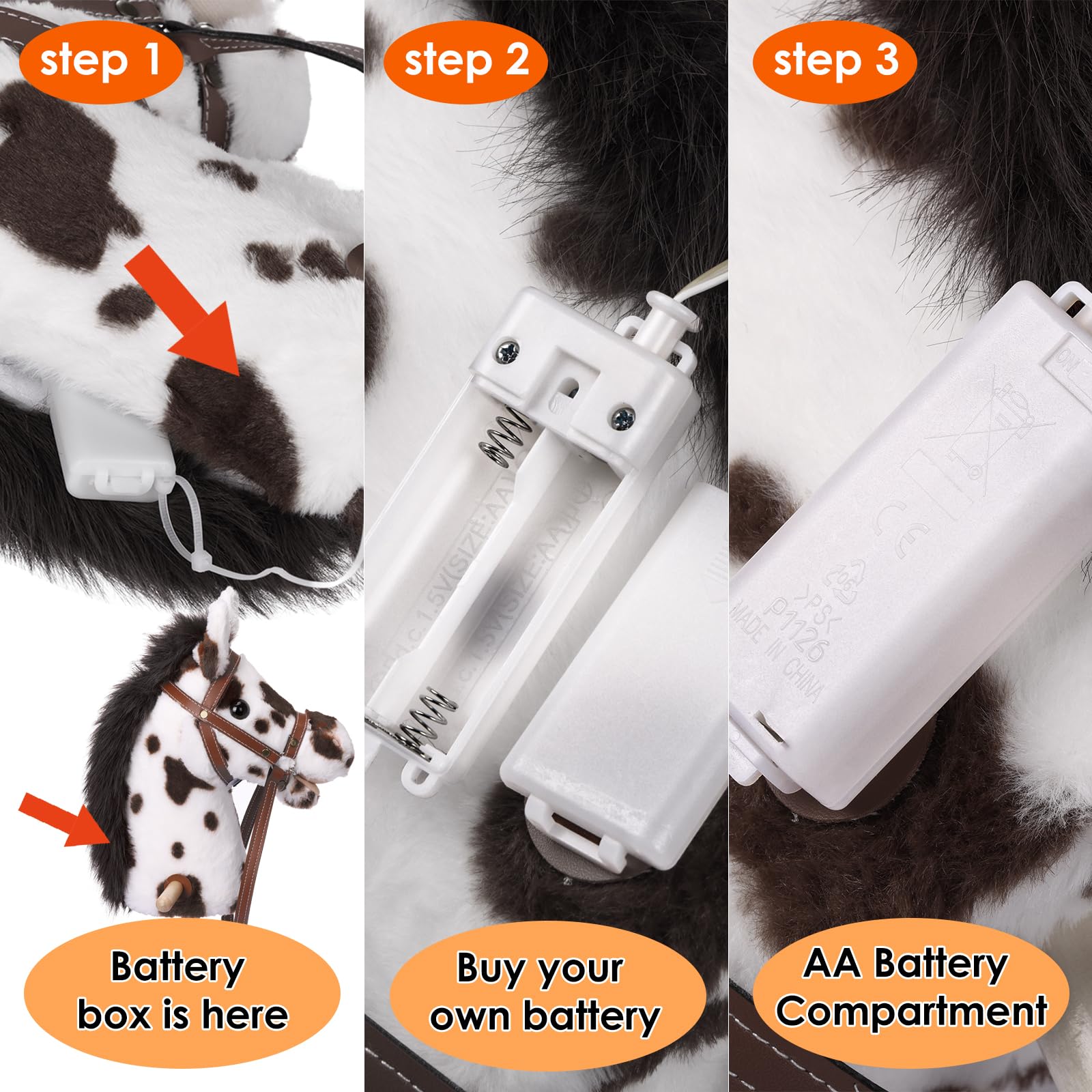 - Q: How does the realistic sound feature work on the stick horse? A: The stick horse features realistic sound effects; after installing AA batteries, children can simply press the left ear to hear authentic horse neighs and hoof sounds, enhancing their imaginative play.