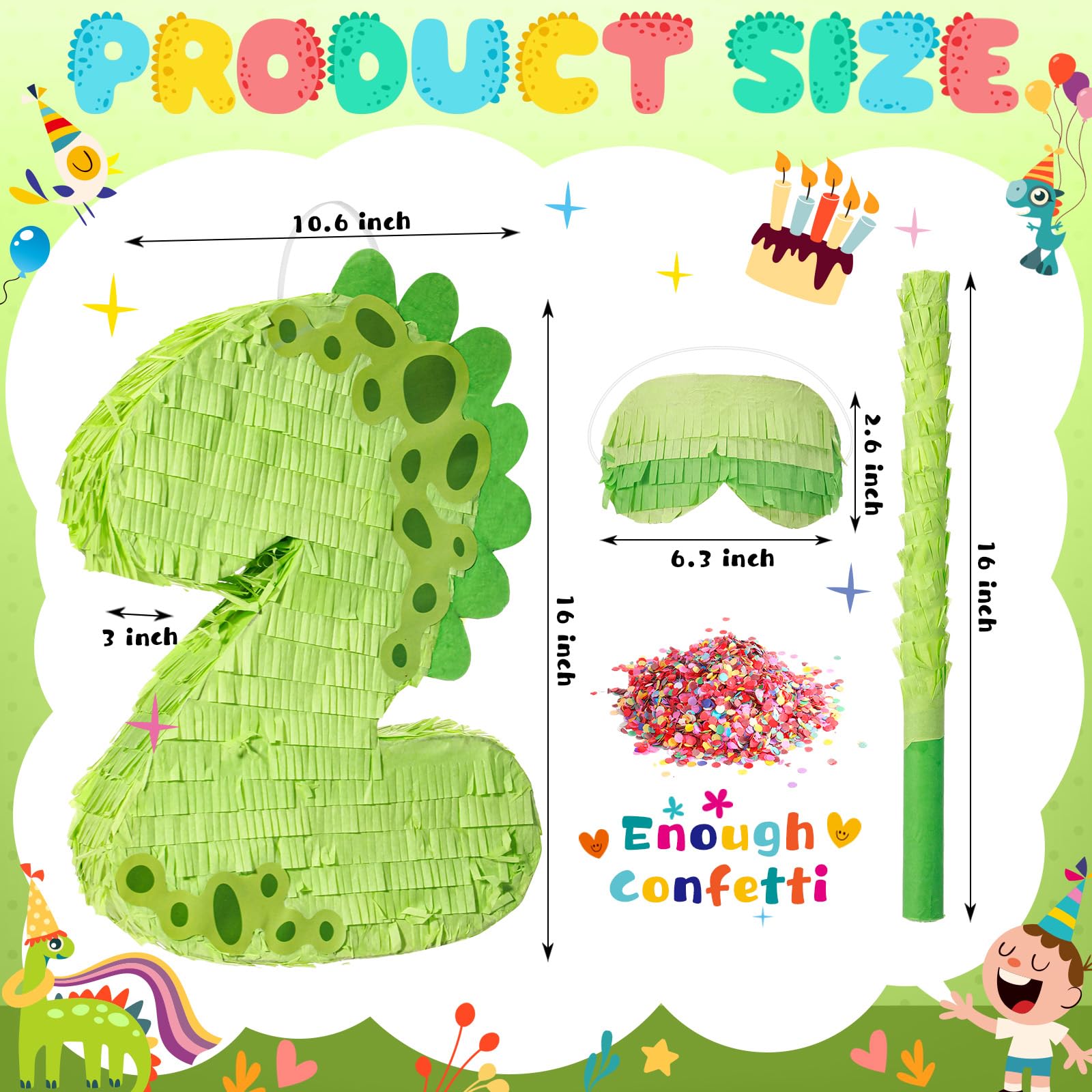 Features: Number 2 dinosaur piata: Positioning as the number 2 dinosaur piata, our birthday piata for boys promise not only quality but also enormous fun. Coordinated as part of your dinosaur birthday party supplies, it can deliver an unforgettable festive atmosphere for your boys birthday party. Depicting a dinosaur world: As a classic feature of animal piatas, our green piatas for birthday party incorporate an enchanting dinosaur from number 2, which brings the prehistoric world to your celebration, making it an ideal birthday piata for boys. Specifications: Main material: paper Color: green Size: 16 x 10.6 x 3 inches Package includes: 1 x Dinosaur piata Notes: Manual measurement, please allow slight errors on size. The color may exist a slight difference due to different screen displays.
