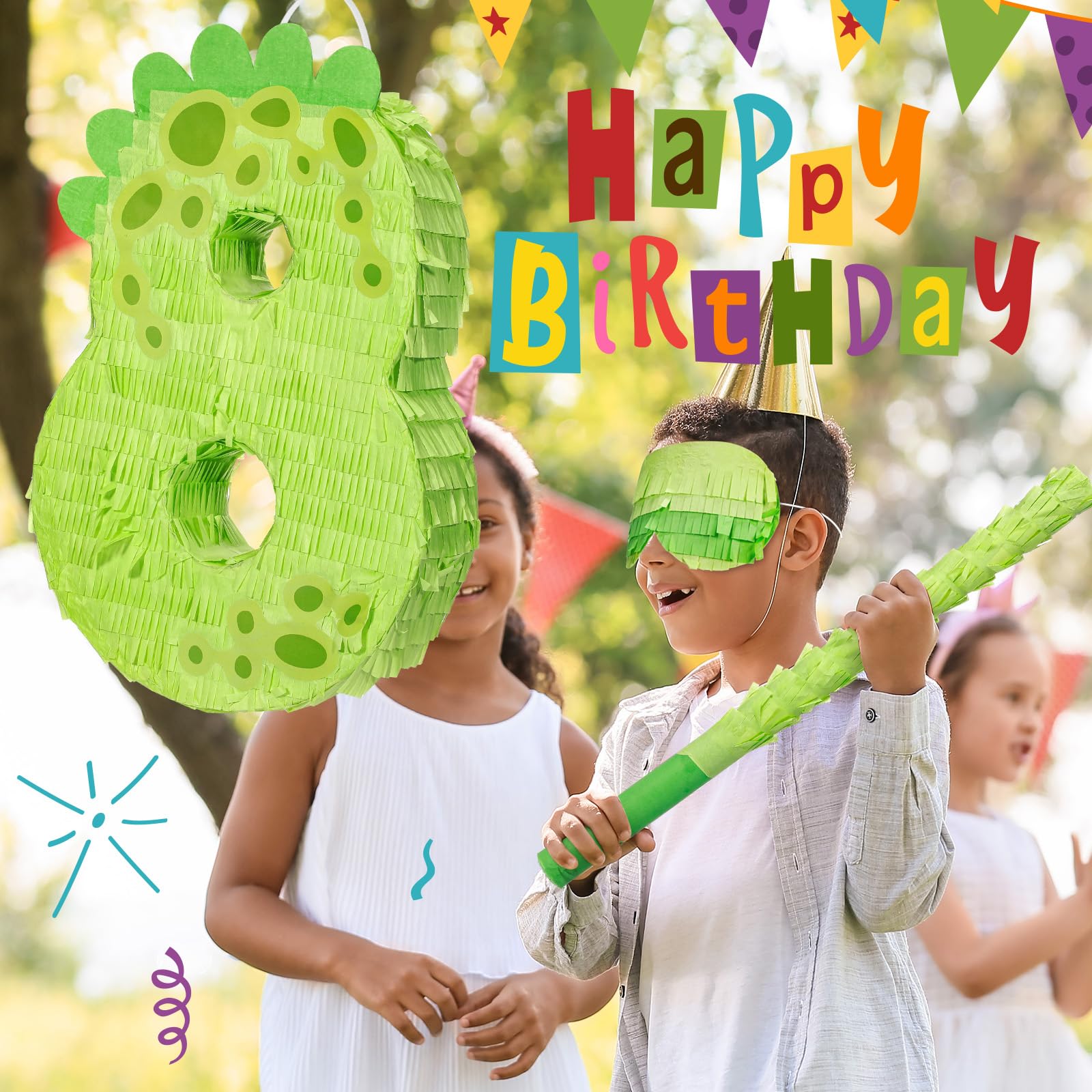 Poen 16 Inch Dinosaur Piata - Number Piata for Boys Birthday Party Supplies with Bat and Eye Mask for Dino Decorations, Animal T