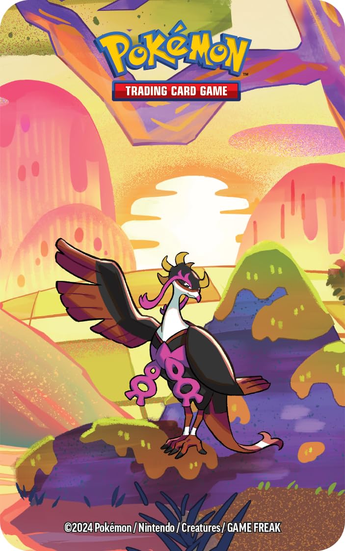 Perfectly sized for taking your favourite 60-card deck on the go (unsleeved), this fantastic Mini Tin features a fun illustration and includes 2 Pok mon TCG: Scarlet & Violet-Shrouded Fable booster packs, 1 sticker sheet and and art card.