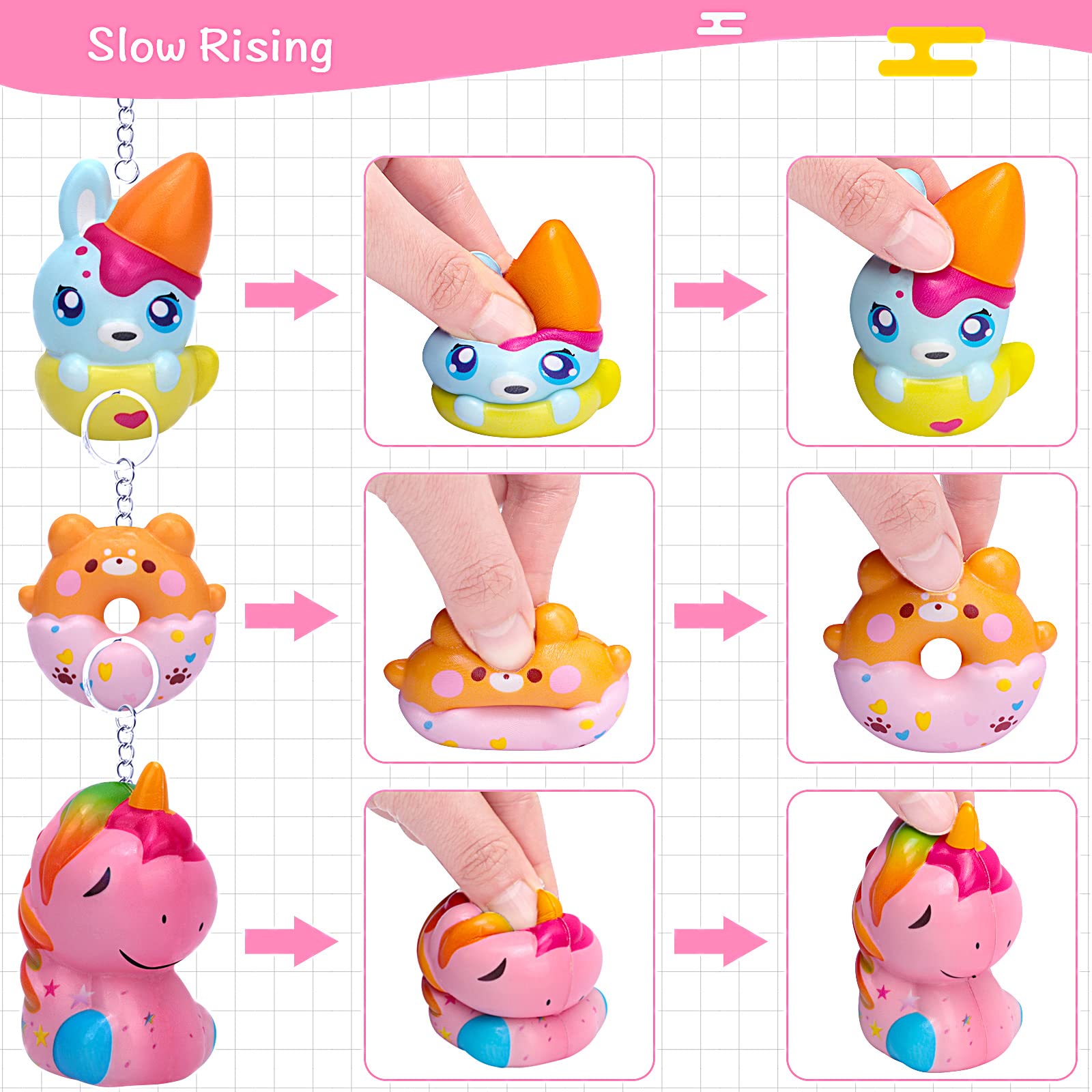 View comparePokonboy 20 Pack Jumbo Squishies Keychain, Cream Scented Slow Rising Squeeze Toys Unicorn Donut Animal Stress Relief Toys Easter Basket Stuffers Birthday Party Favor For Boys And Girls Age 3+