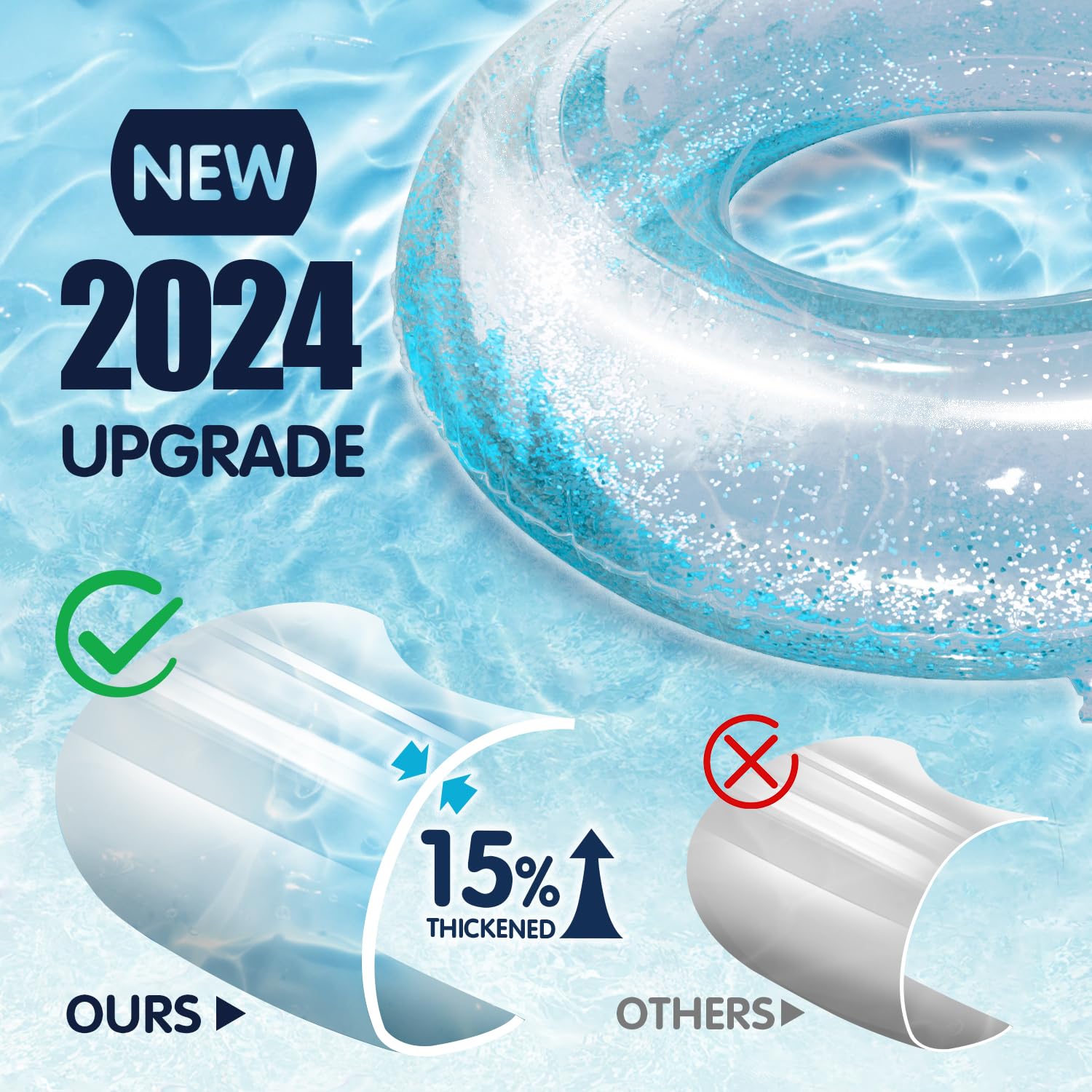 View comparePolita Pool Float, Pool Floats Kids Summer Glitter Pool Tube With Confetti,Tube Pool Toys Beach Party, Transparent Inflatable Floating Tubes For Adults And Kids (Multicolor+Blue)