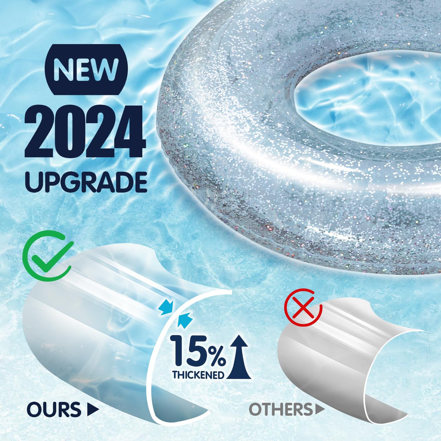 View comparePolita Pool Float, Pool Floats Kids Summer Glitter Pool Tube With Confetti,Tube Pool Toys Beach Party, Transparent Inflatable Floating Tubes For Adults And Kids (Multicolor+Silver+Blue)