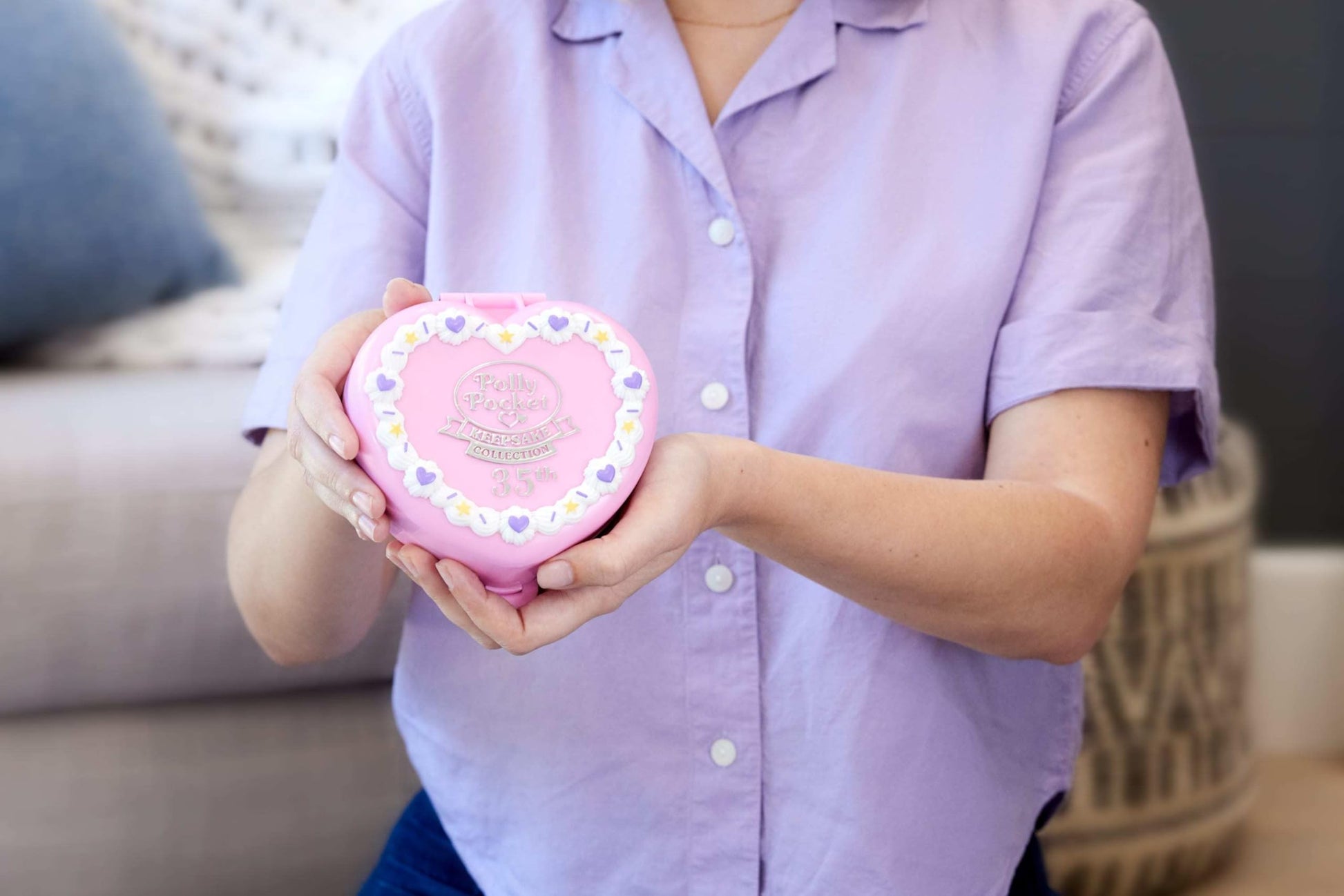 Happy Birthday, Polly! Celebrate the 35th anniversary of Polly Pocket with this special edition remake of the classic Partytime Stamper Compact from 1992. Originally debuting from the Party n Play Collection, this must-have collectible includes 2 iconic heritage dolls, 3 party stamps, an inkwell, and 12 Polly stationary cards. Featuring a nostalgic heart-shaped outer with celebratory details like icing and sprinkles, this ode to Polly Pocket is all things special and sweet. The premium window box packaging is the perfect way preserve and display the compact. Collectors everywhere can take a trip down memory lane and re-live childhood memories with this commemorative keepsake. Subject to availability. Colors and decorations may vary.