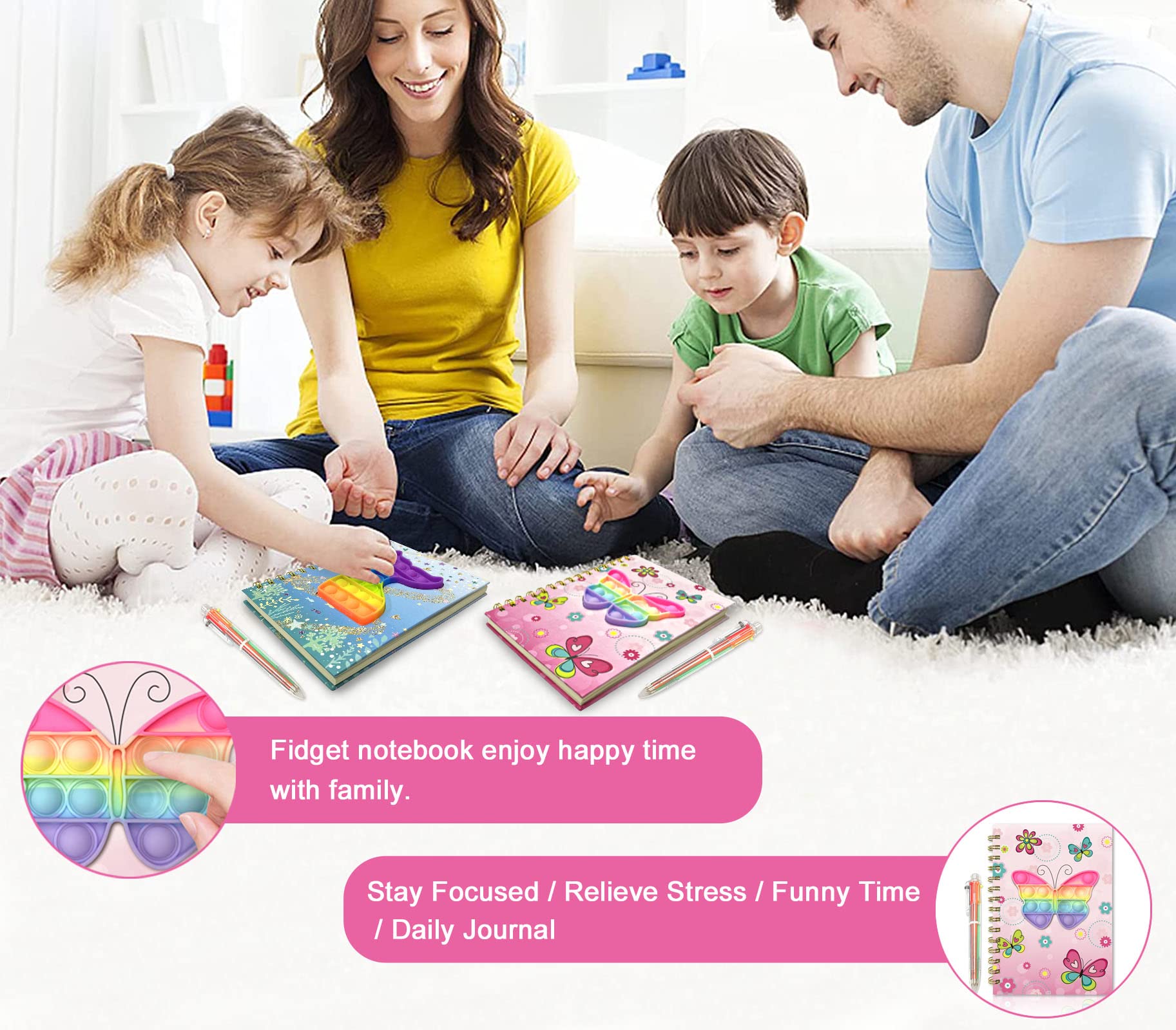 ?Notebook For Kids?- This Pop Notebook It Is 8.3 X 5.7 Inches, 160 Lined Pages In Premium Thick Ivory White Paper. This Journal Combines Pop Fidget Toy And Notebooks Together, Children Have Fun When Feel Boring And Tired Studying | ?Cute Spiral Notebook?- Hardcover Girls Journal Is Binding With Twin-Wire Spiral, It Makes The Notebook Can Be Lay Flat, Comes With One 6-Multicolored Ballpoint Pen As A Set, It’S Just Excellent For Kids To Enjoy The Wiring, Drawing, Doodling Easily | ?Unique Pop Fidget Stuff?- The Hardcover Diary Combines Pop Fidget Toy And Notebooks Together. Children Pressing The Bubbles To Have Fun And Relax When Feel Pressure, Boring, Tired Studying | ?Ideal Gifts For Kids?The Little Girls And Boys Love This New Style Of Notebook With Pop Fidget Accessory. It Is The Best Gift For The Kindergarten, Preschool Or Teenage From Age 6-12 Years Old, In Any Occasion Like Birthday, Christmas, Easter, Parties And So On | ?100% Quality Guarantee?We Provide 7X24 Customer Service, If You Have Any Comments On The Product, Or Service, Please Contact Us Immediately, We Will Be Happy To Make You Satisfied