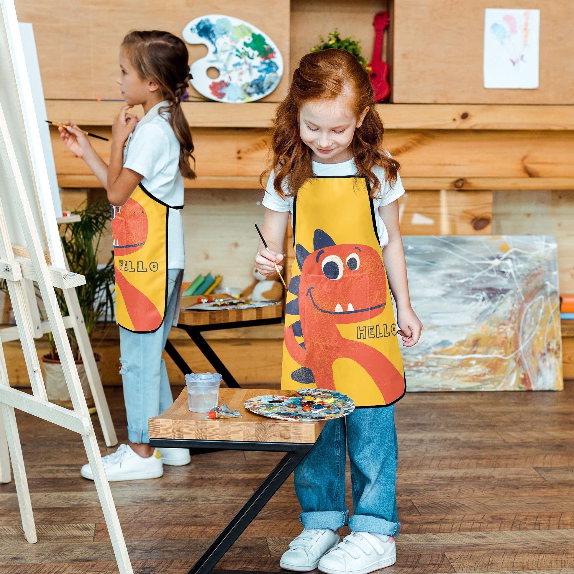 Popologa Dinosaur Apron For Girls Boys Kids Cooking Painting Aprons Art Smock Supplies Toddler