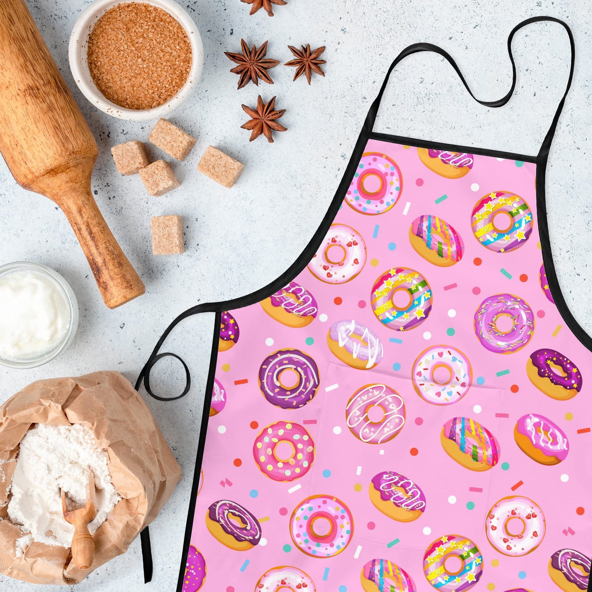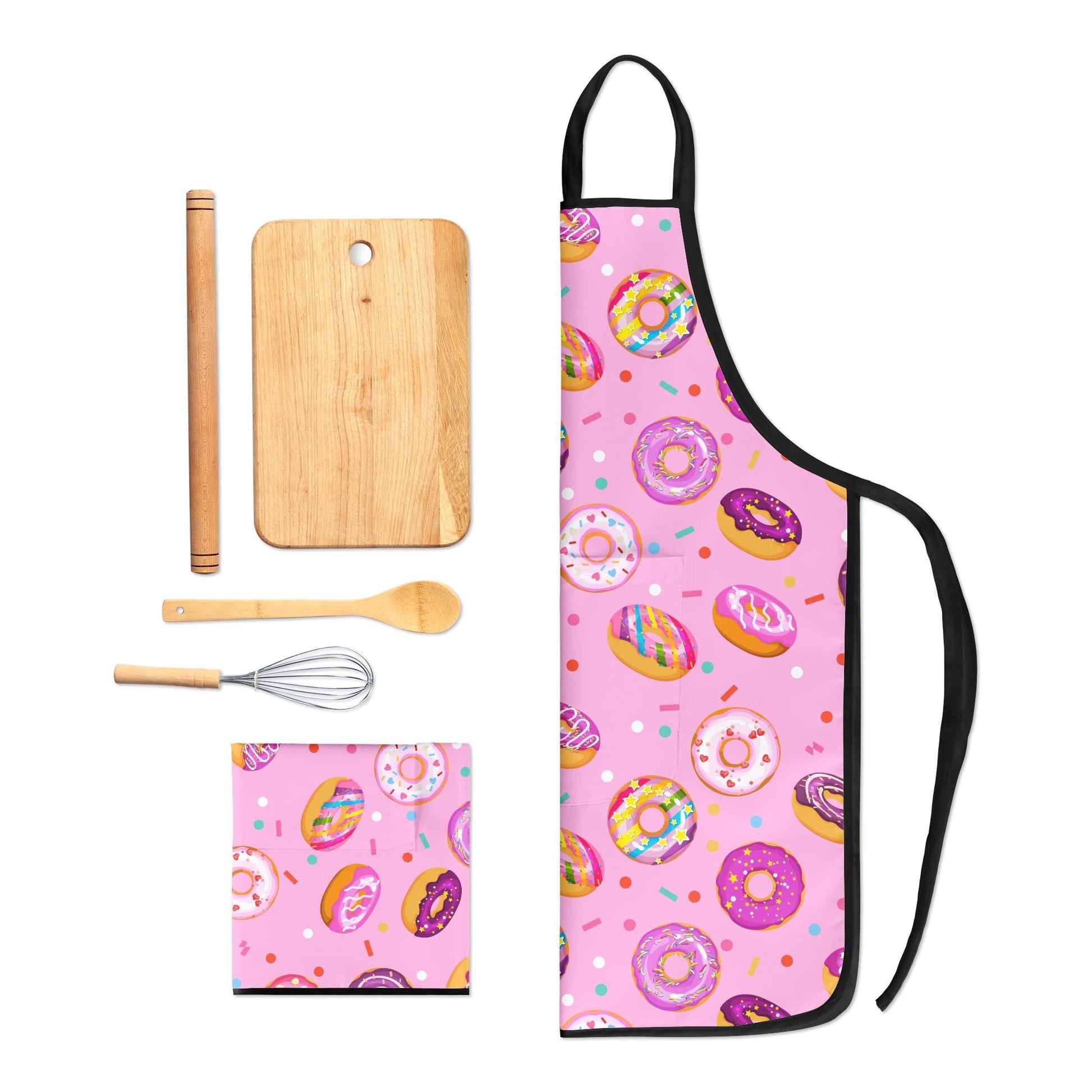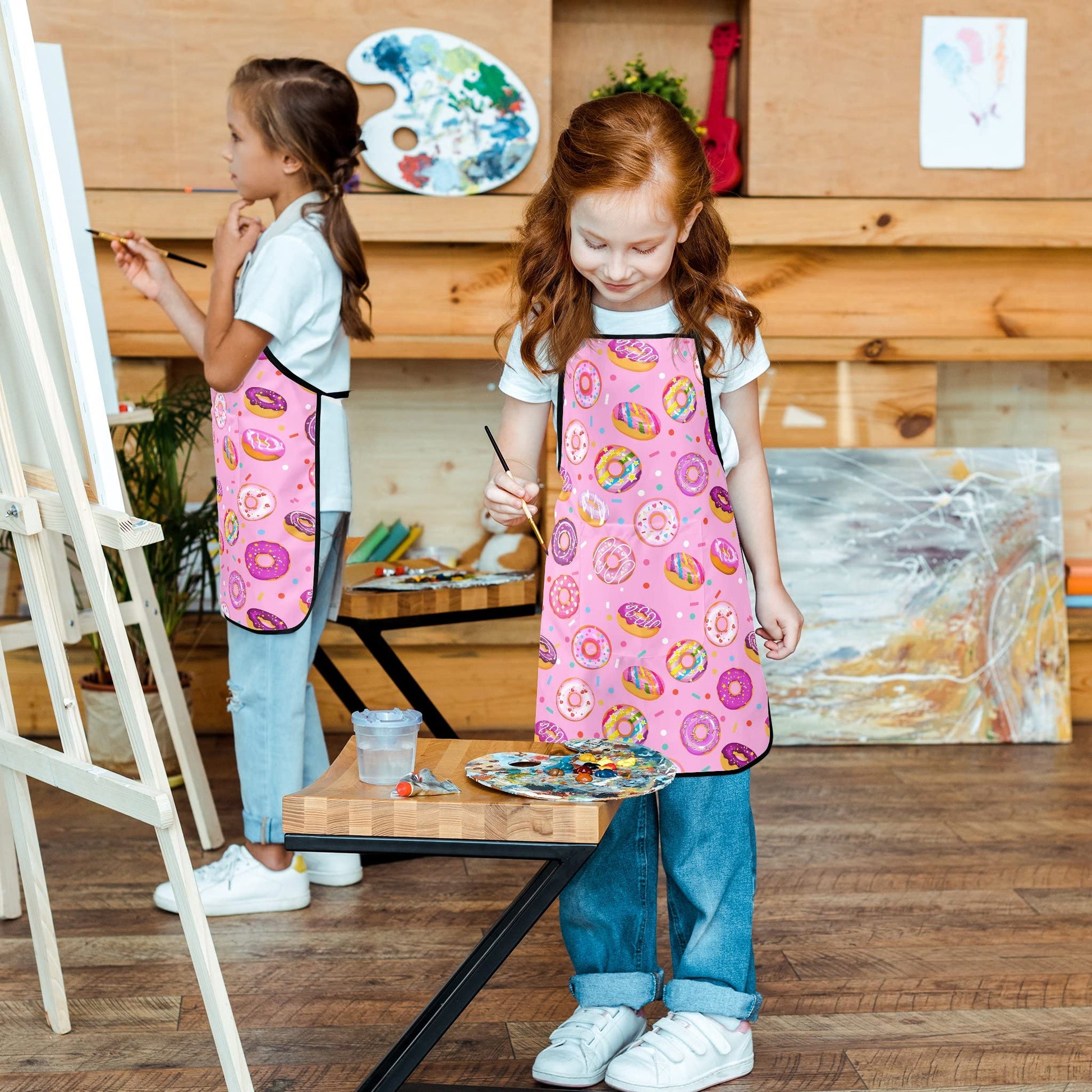 Popologa Kids Apron Doughnuts For Girls Boys Painting Cooking Kitchen Toddler Waterproof Aprons Art Smock Supplies With Pockets-