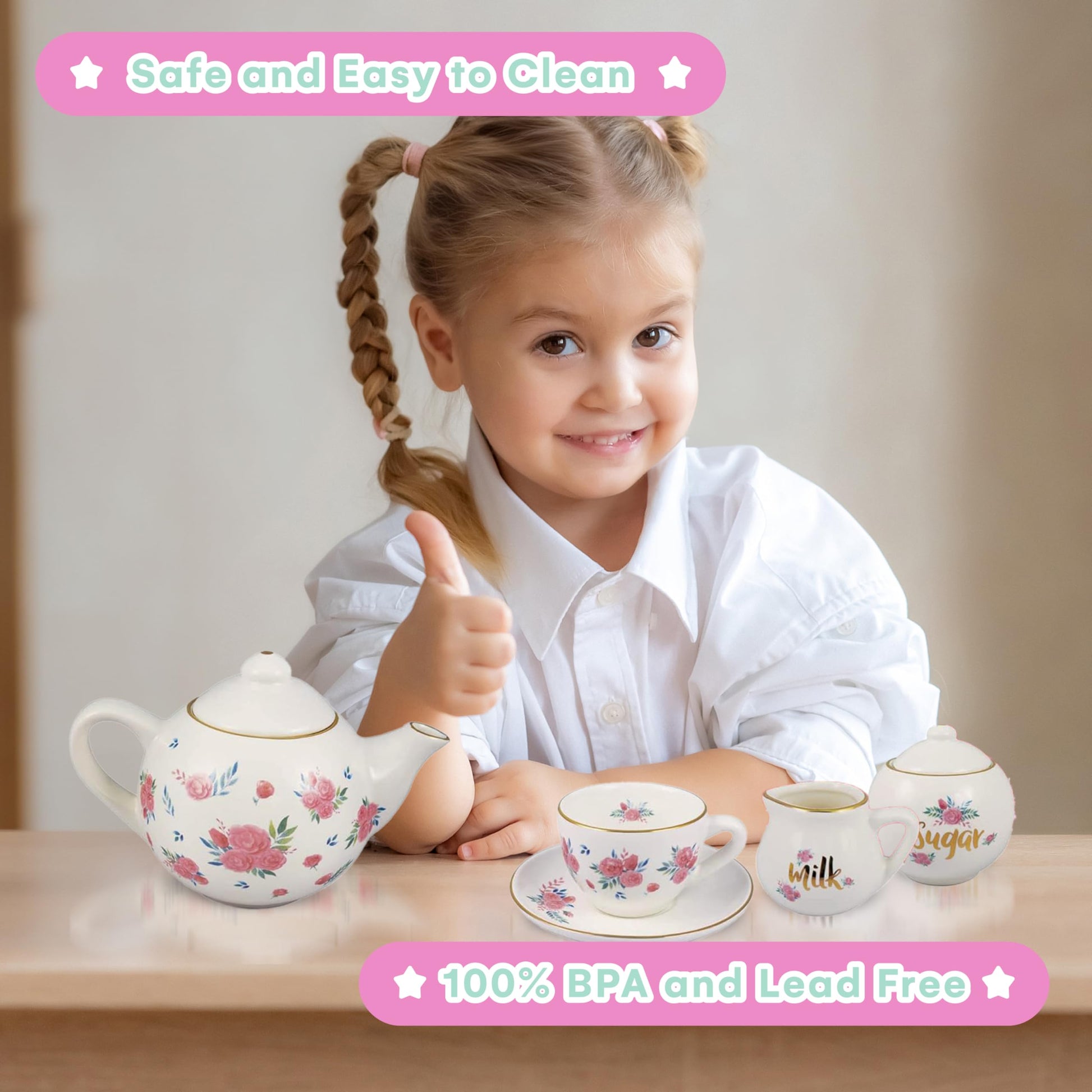 - Q: How does this tea set compare to other children's tea sets? A: This tea set stands out with its durable porcelain material and vintage floral design, making it both charming and functional.
