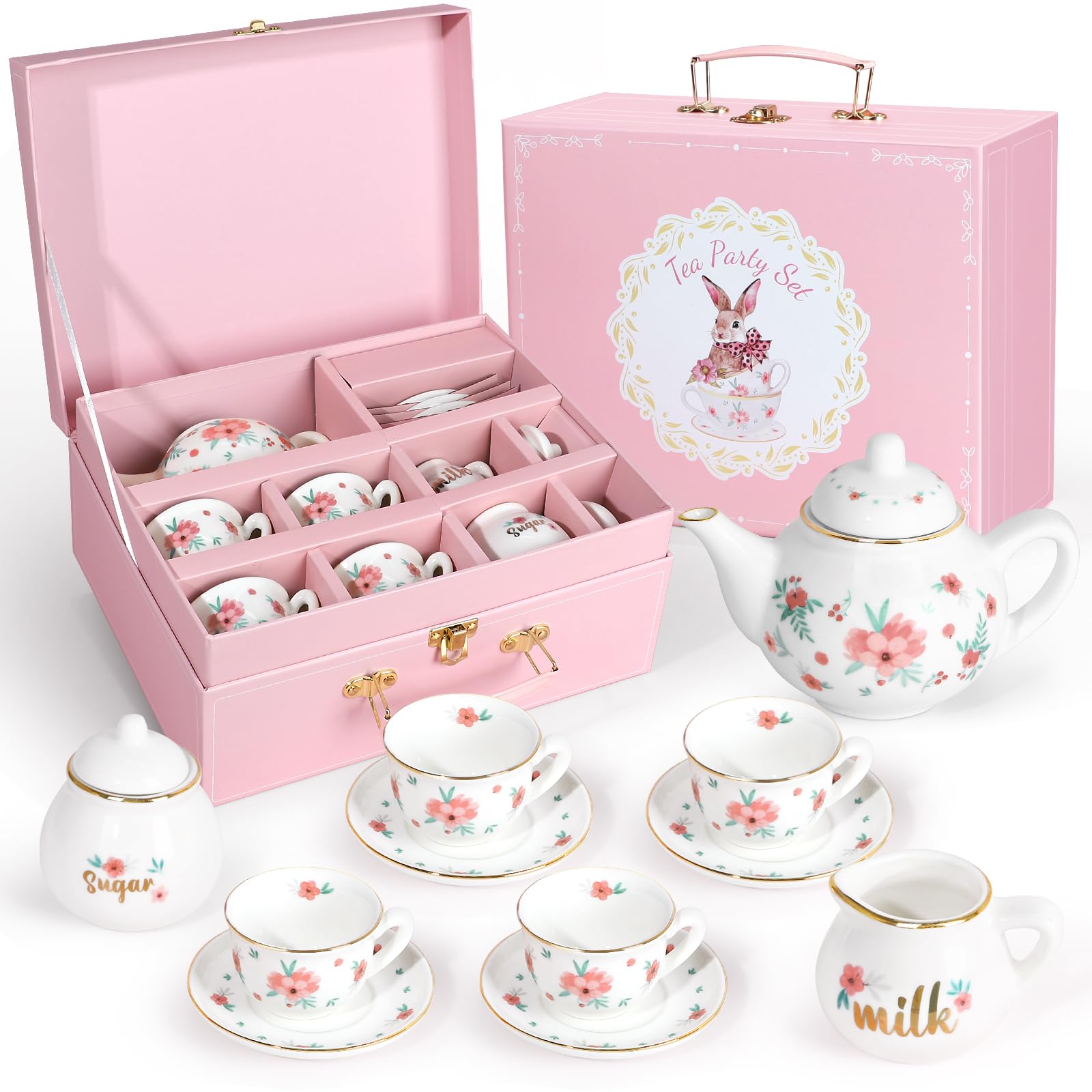 View comparePorcelain Tea Set for Girls, Tea Party Set for Little Girls, Kids Tea Set Kitchen Pretend Play, Princess Tea Time Playset with T