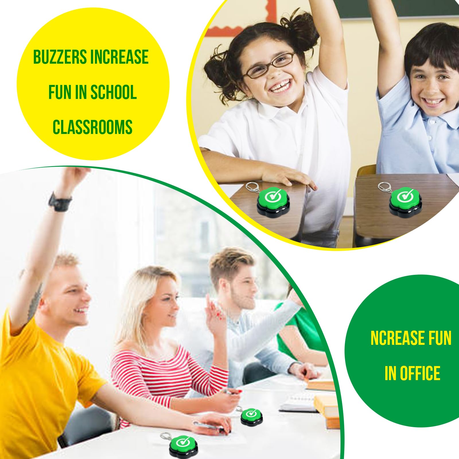 - Q: Can these buzzers be used for educational games? A: Absolutely! These buzzers are perfect for home quiz evenings, classroom games, or even training your pets, adding fun and engagement.