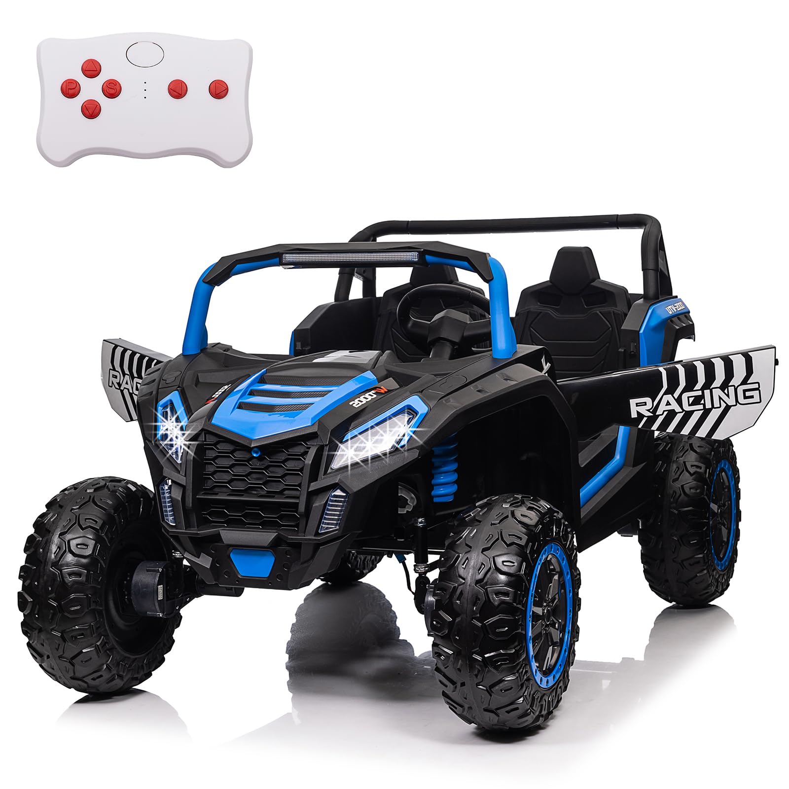24V Battery Powered EVA Electric Vehicles: POSTACK ride on UTV is powered by a 24V rechargeable battery which ensures a long playtime at 3.7-5.6mph speed. It has 4 powerful drive motors and EVA tires, which is suitable for different terrains. (Notice: Even if you are not operating the vehicle, please charge the battery once after each use to maximize battery life.) | 2 Seaters Ride On UTV: POSTACK kids off-road electric vehicle is designed with 2 adjustable seats and two individual safe belts. The large seat space allows two 3-12 kids sit side by side. You can also drive with your kid. The rear wheels are equipped with strong spring suspension system which bears maximum load of 220 lbs. The adjustable seat can ensure children of all ages enjoy themselves. | Parents Remote Control& Manual Driving: POSTACK off-road electric toy car has two driving modes. Parents can use a 2.4G remote(forward/ stop/ backward modes, 3 speed) to control this ride on vehicle to guide your child to drive safely and avoid potential danger. Kids also can manually drive the car by themselves by electric foot pedal and steering wheel which allows your child to experience fun of realistic driving. | Realistic Driving Experience: POSTACK kids ride on electric car for big kids has cool appearance, two lockable doors, adjustable LED headlights, USB port, TF card slot, AUX input, music and early education system, providing realistic driving experience. This kids ride on truck has a Bluetooth music which allows you to play any music from your phone. | Big Surprise For Kids: POSTACK kids ride on toy truck is made of safe PP material and equipped with multiple functions that can enrich your little one