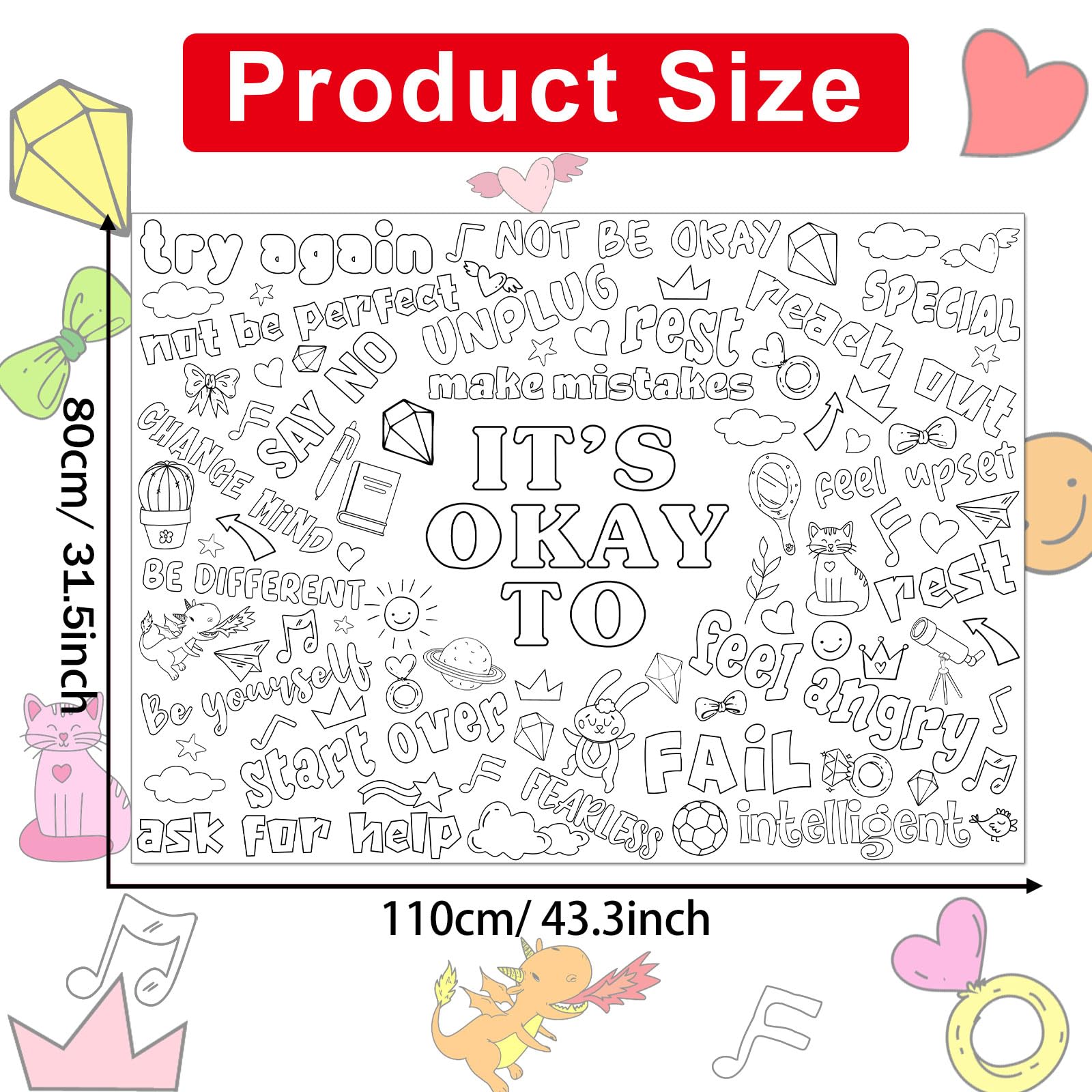 Positive Affirmations Coloring Poster For Kids Giant Huge Inspirational Coloring Tablecloth Large Positive Coloring Books Jumbo
