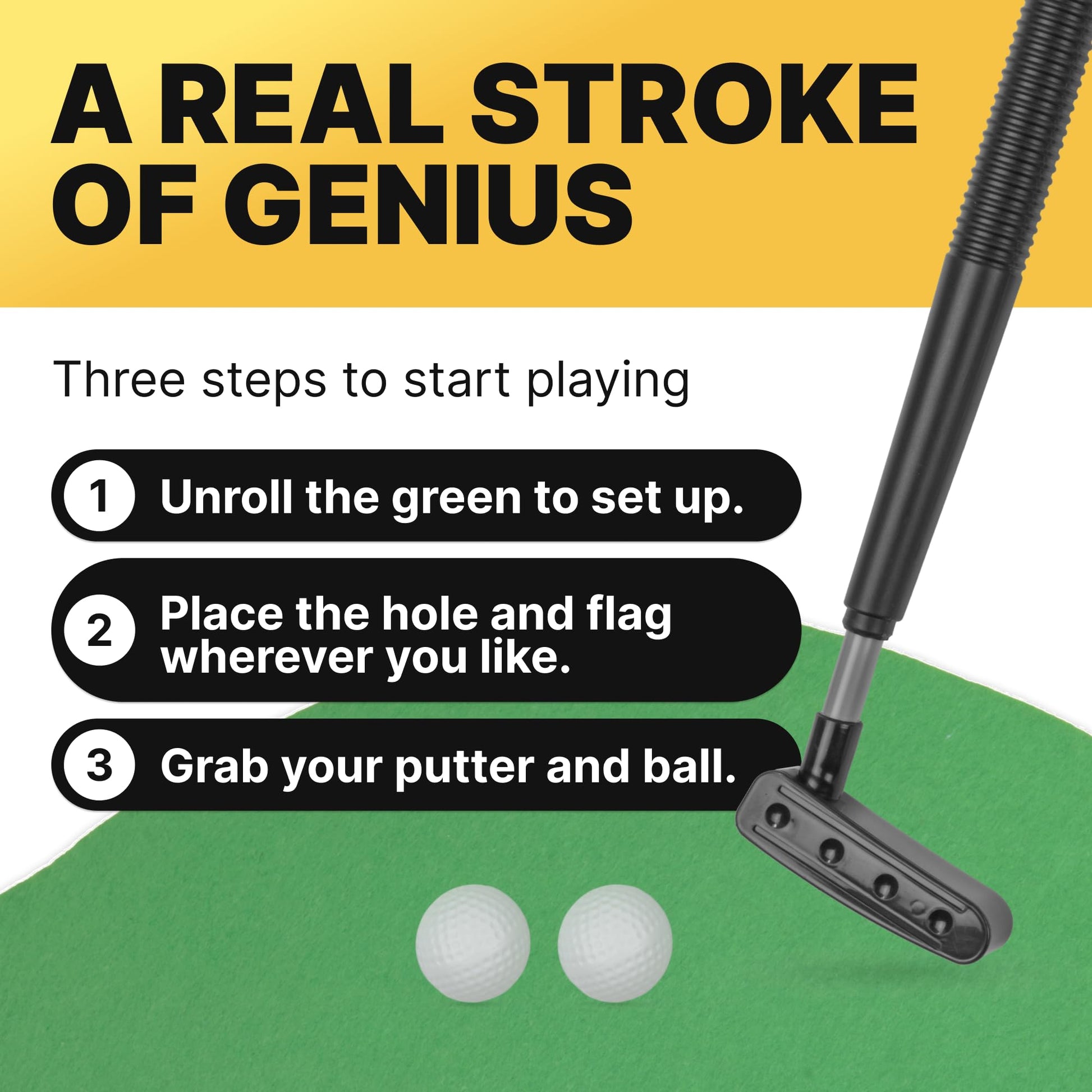 • Q: What does the Potty Putter set include? A: The Potty Putter comes as an all-inclusive set that includes a putting green, a golf ball, a putter, and a 'Do Not Disturb' sign. Everything you need to start playing is included, making it easy to set up and enjoy.