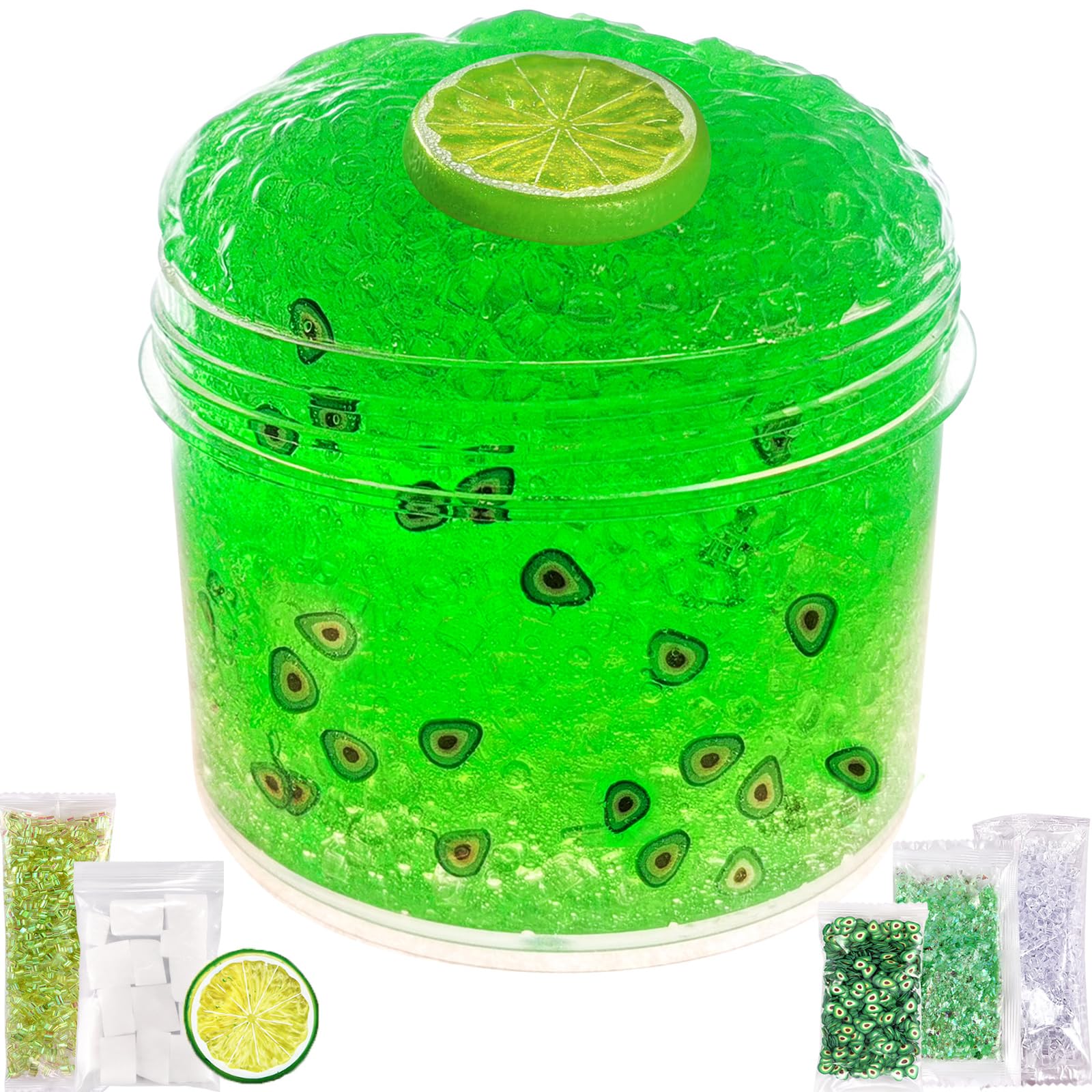 Premade Crystal Slime Lemon Green Jelly Cube Glimmer Crunchy Slime, Includes 6 Sets Of Slime Add-Ins, Party Favors For Kids,Super Soft And Non-Sticky, Party Favors For Boys And Girls