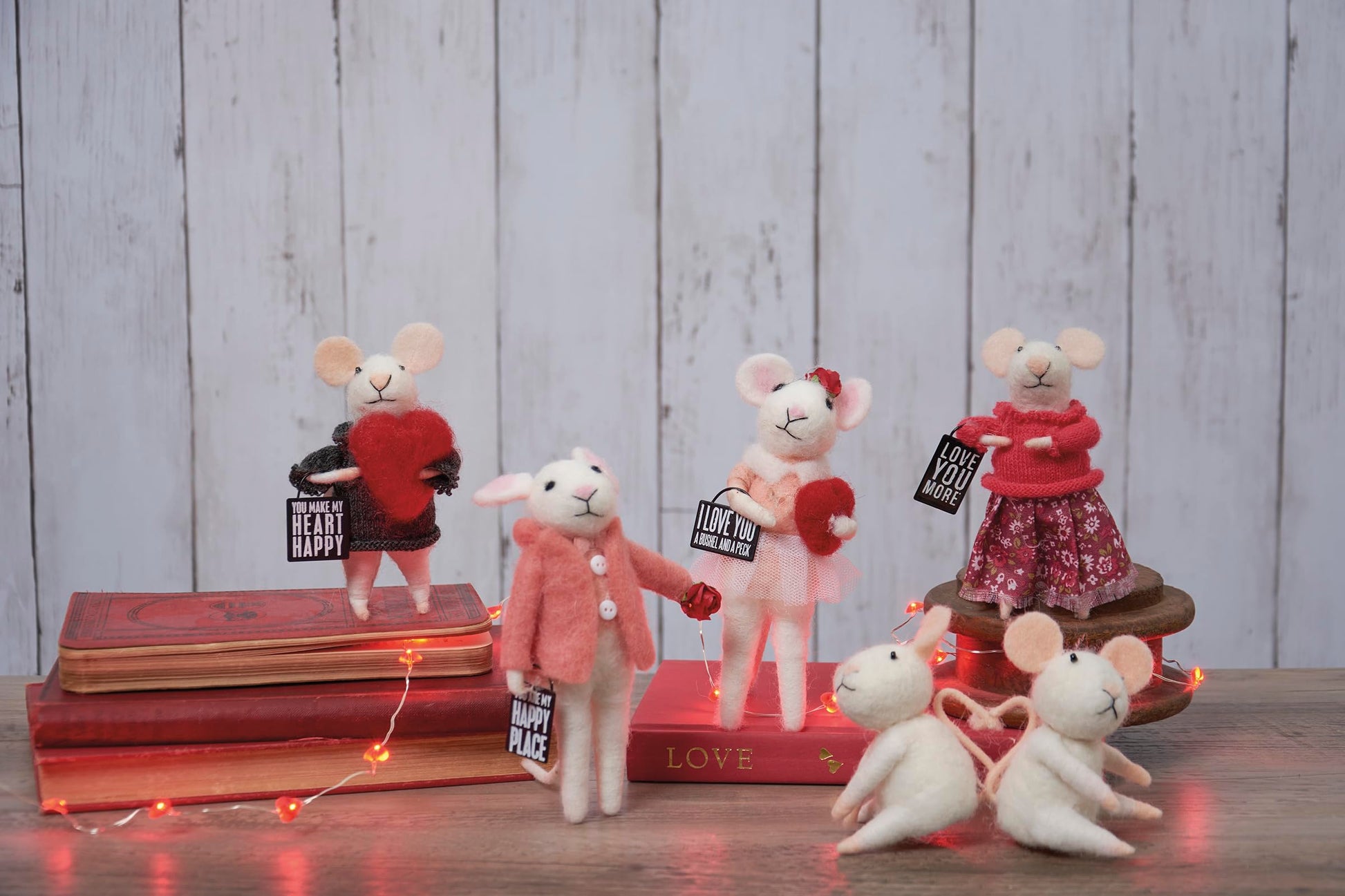 - Q: How can I display the Heart Happy Mouse? A: The Heart Happy Mouse can be displayed alone or as part of a collection with other felt dolls, making it a versatile addition to your home décor.