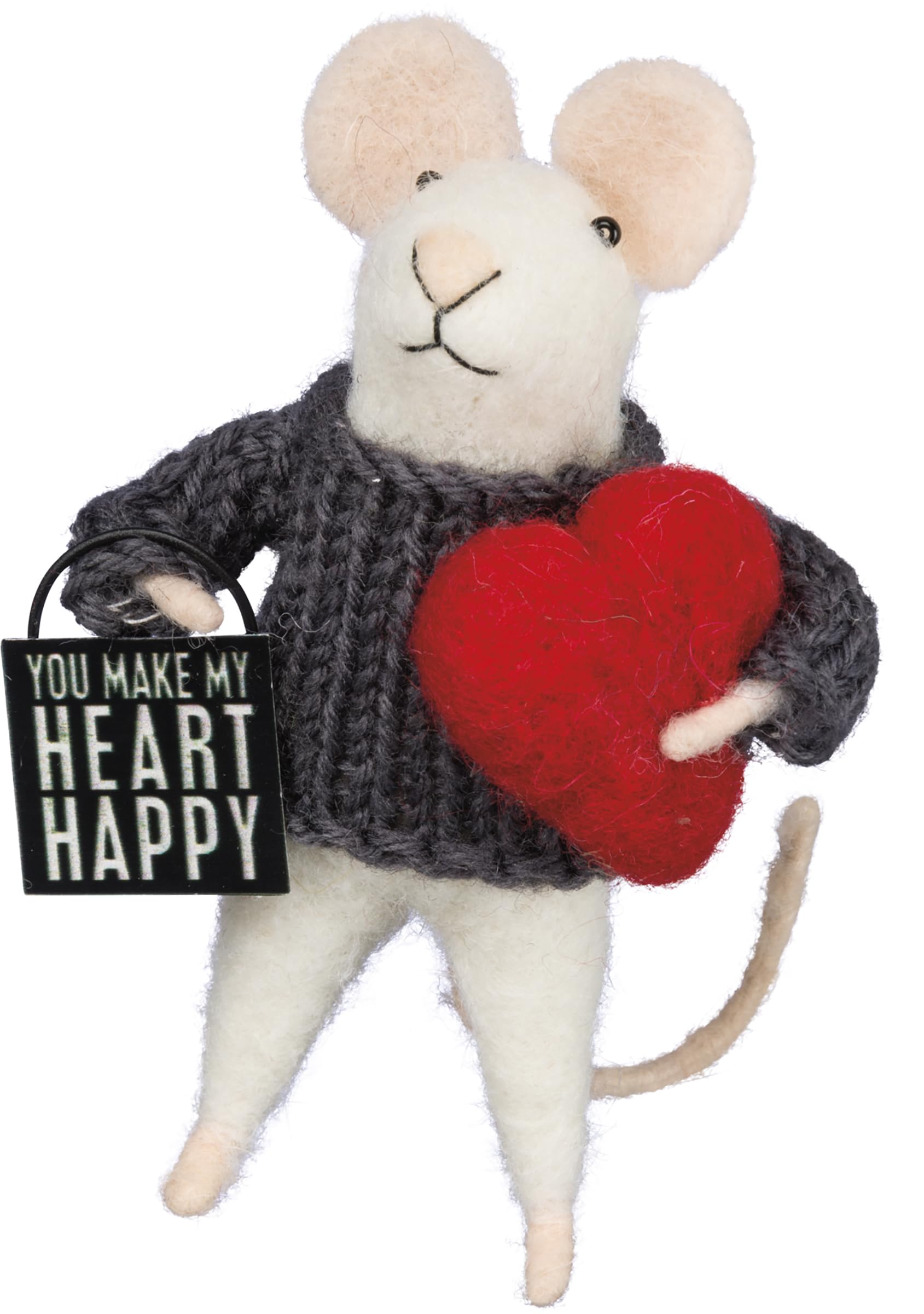 A Felt Critter Lending A 'You Make My Heart Happy' Sentiment With Knit Sweater And Heart Detail With A Clear Filament Hanger For Easy Decorating. Great To Display With Other Critter Styles Or Gift To A Collector! Contains Small Parts; This Is Not A Toy.