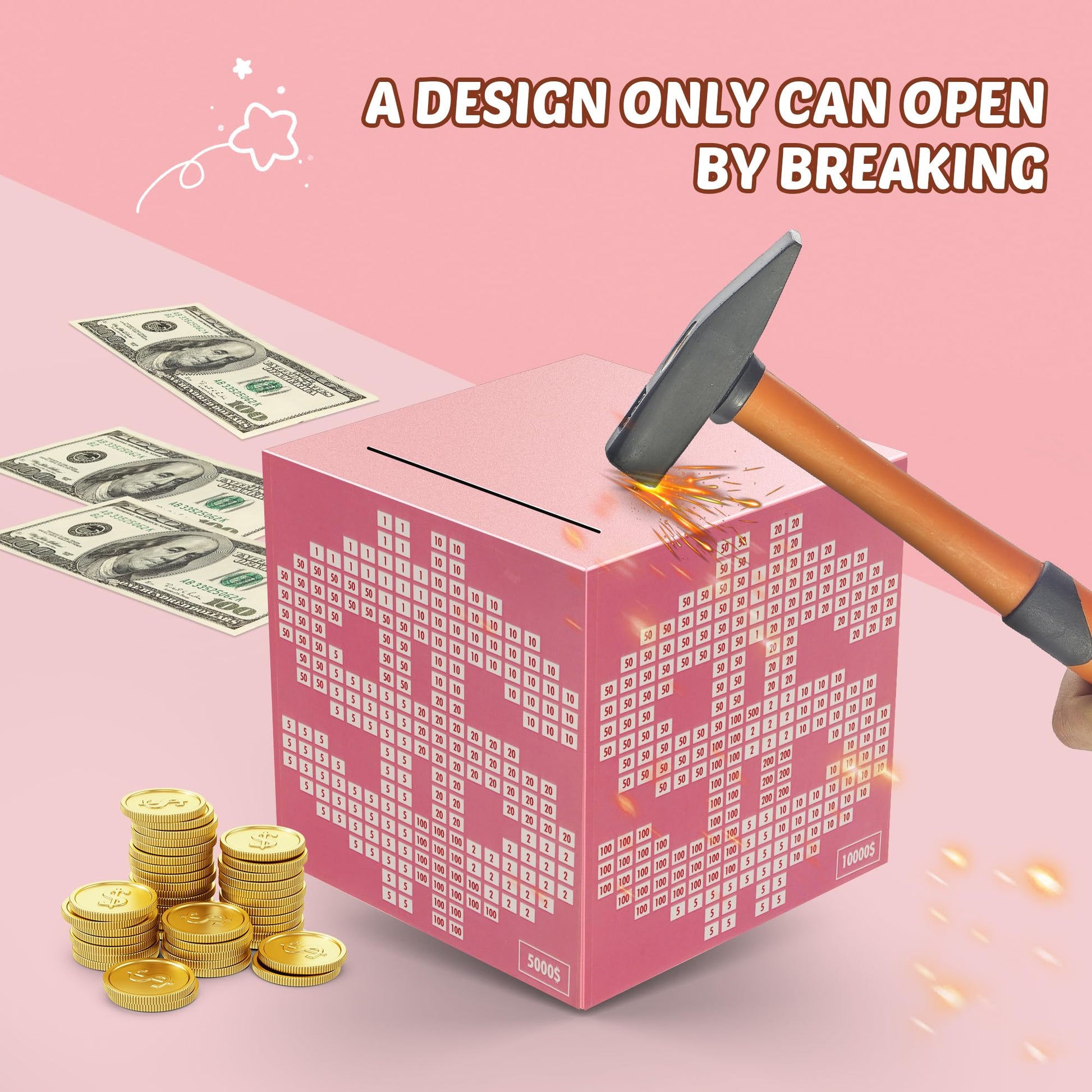 - Q: How do you open the Primo Lines Pink Piggy Bank? A: The savings challenge box is designed with a single slot for depositing money, and it must be pried open with a hammer hook or a saw once your savings goal is achieved. This design prevents tampering and ensures that you stay committed to your savings plan.