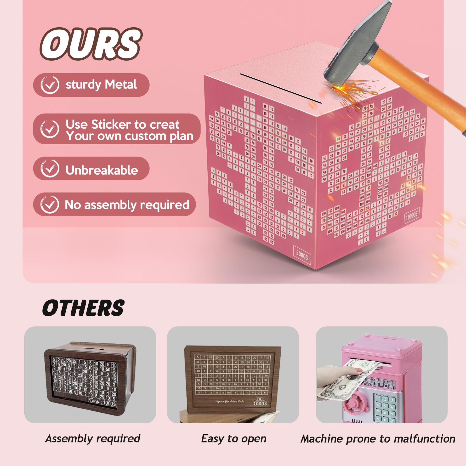 - Q: How does the savings challenge box work? A: The savings challenge box allows you to set savings targets of $500, $1000, $2000, $3000, $5000, or $10,000. You can also customize stickers to personalize your saving experience. The box has numbered slots for each target, making it easy to track and celebrate your progress.
