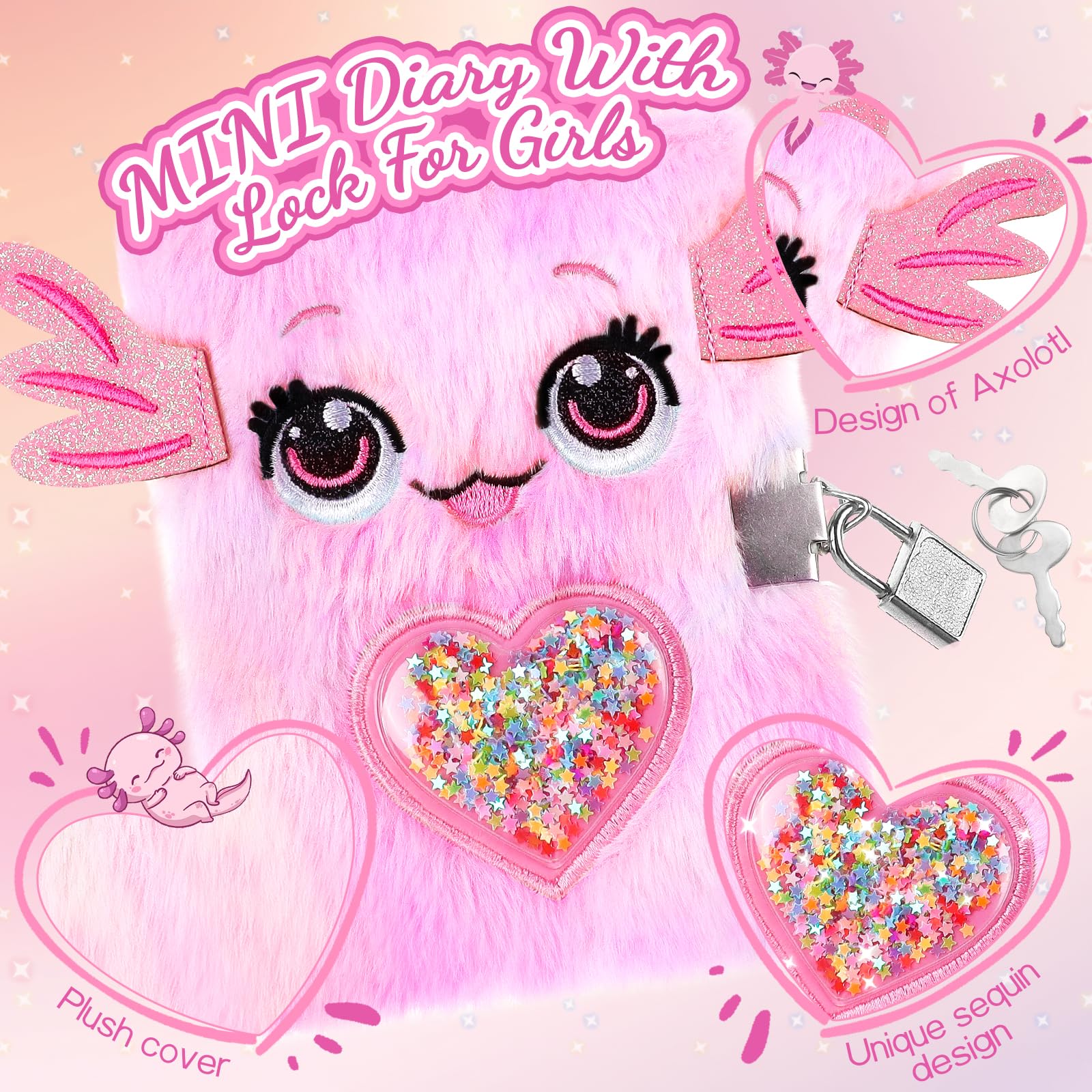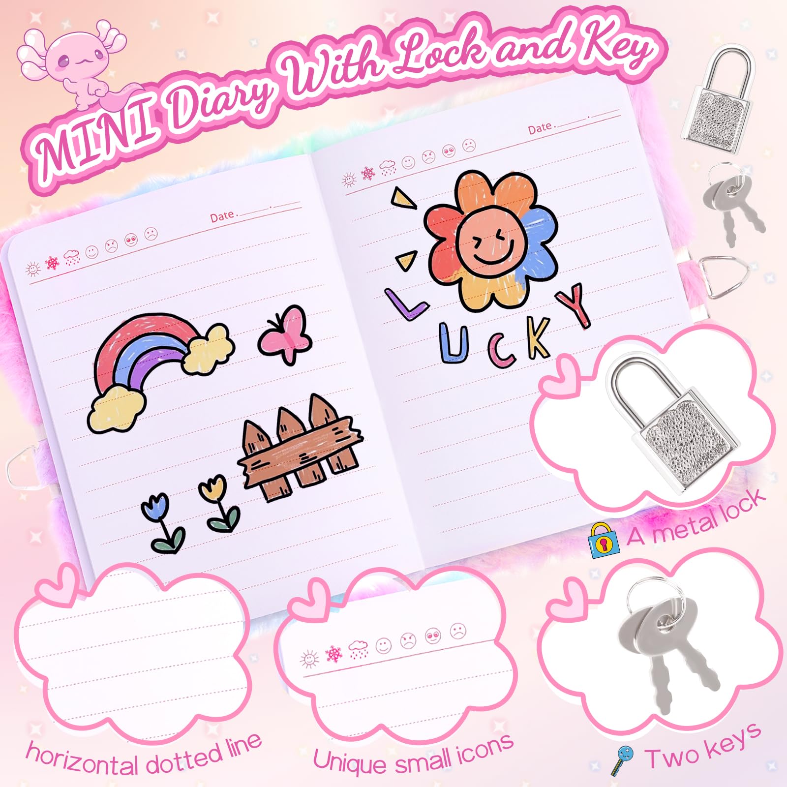View comparePrinbarbee Mini Axolotl Diary For Girls With Lock And Keys,4.7X6.1In Kids Journal School Travel Notebook Gift Set For Writing An