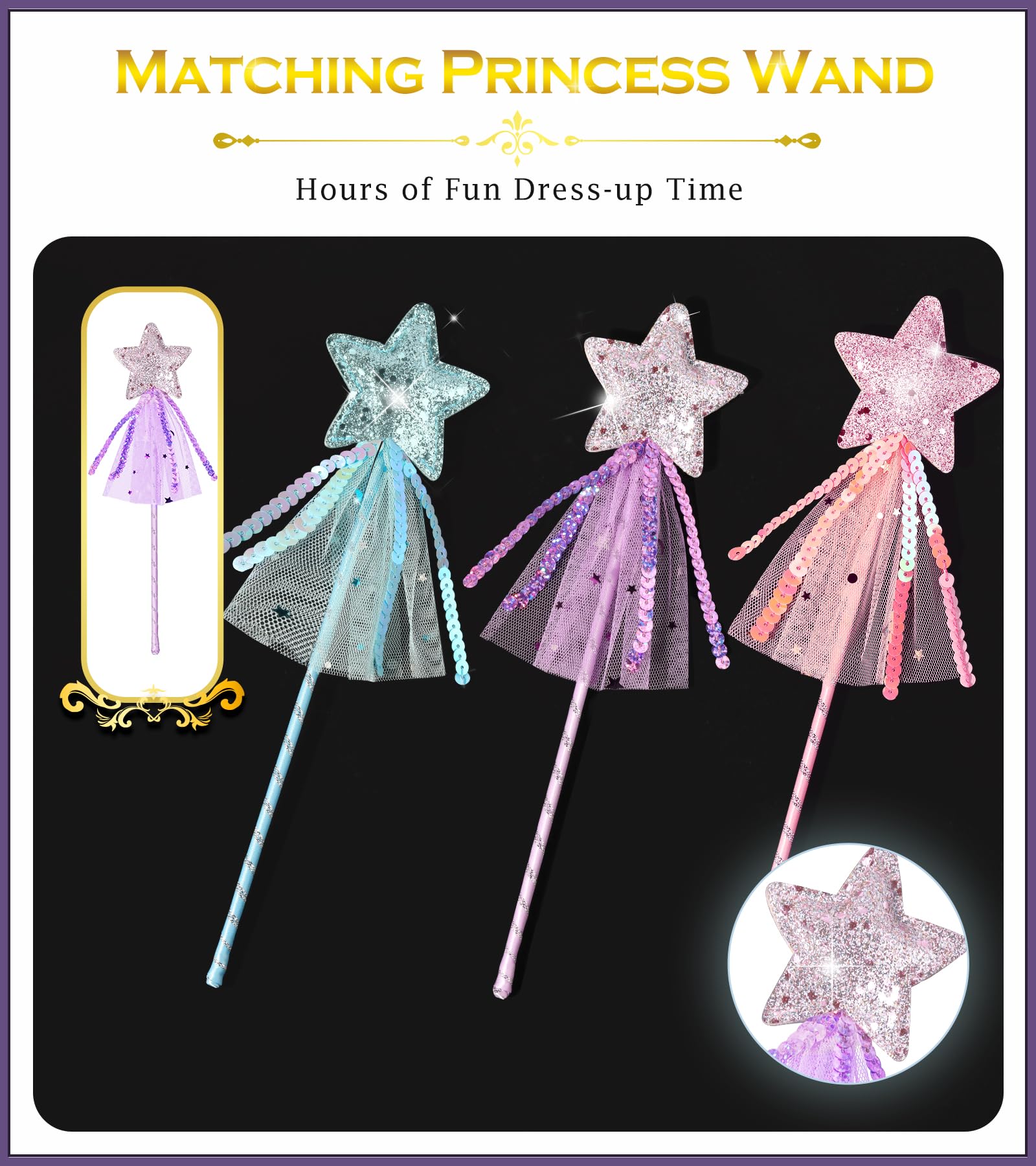 Princess Dress Up Accessories Magic Wand For Kids, 3Pcs Glitter Star Wands Fairy Wands, Princess Wands For Little Girls Party Favor Decorations, Costume Set Toy Gift For 3 4 5 6 Year Old Toddler Girls