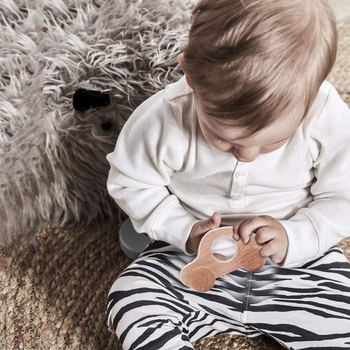 Promise Babe Organic Wooden Baby Push Toys Fine Motor Development Sensory Skills Toy Montessori Grasping Toy 2Pc Wood Car Rattle