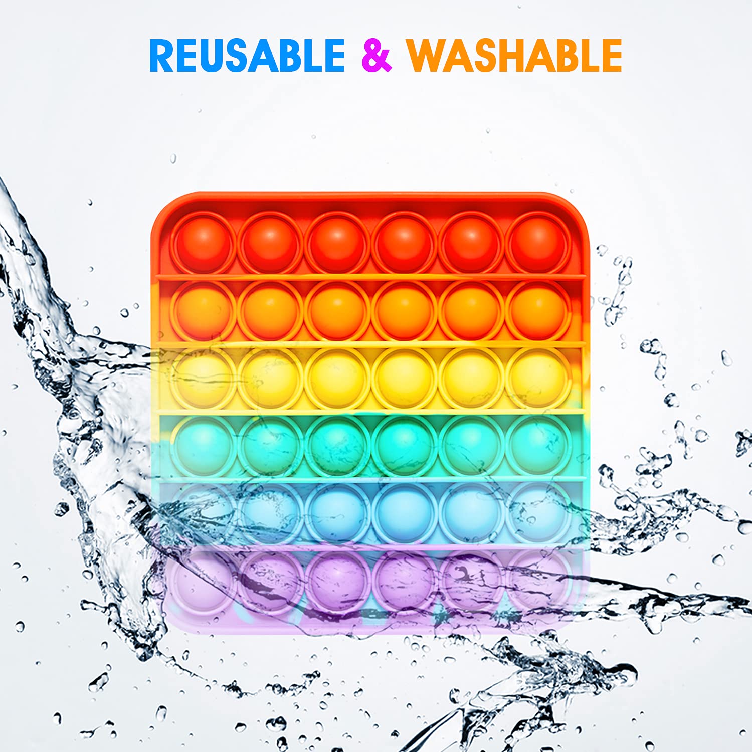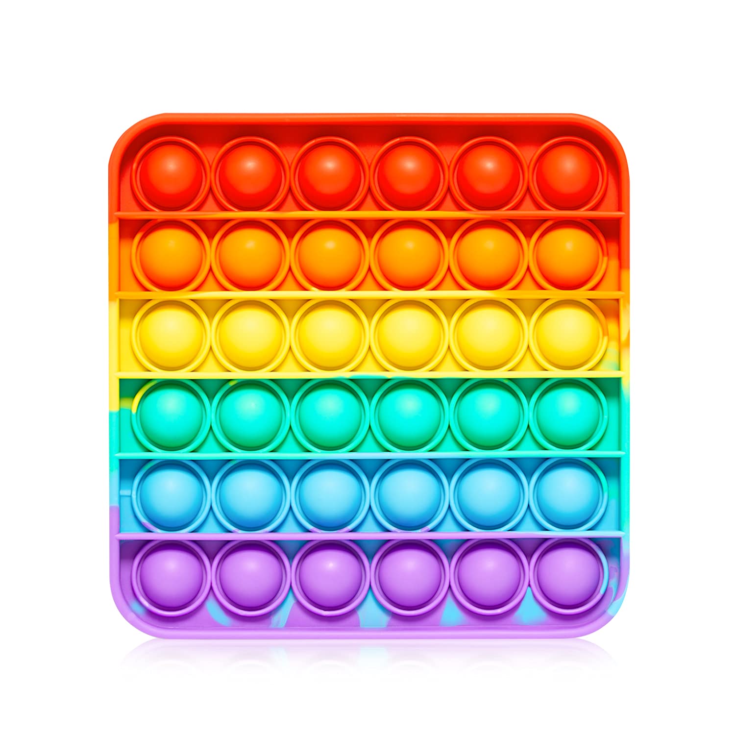 Push Pop Bubble Fidget Sensory Toy - For Autism, Stress, Anxiety - Kids And Adults (Rainbow Square)