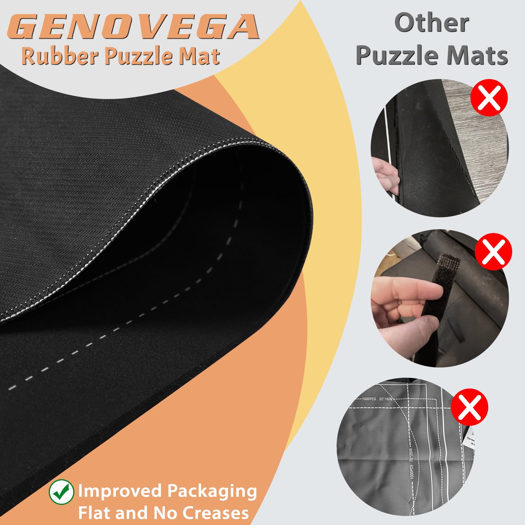 - Q: What materials are used in the Genovega Puzzle Mat? A: The mat is made of a smooth polyester top and a natural rubber bottom, providing a waterproof base and an easy-to-handle surface for puzzle solving.