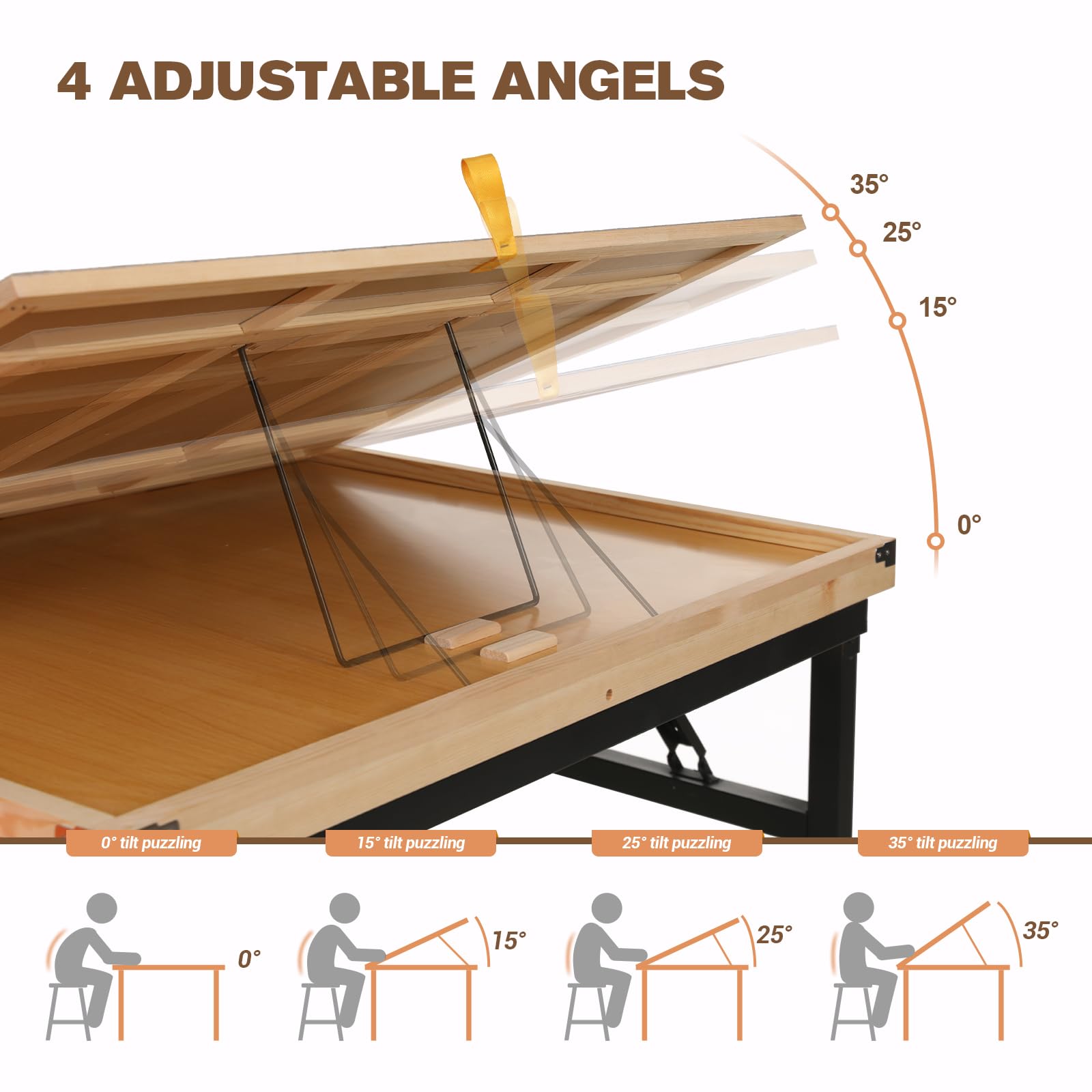 - Q: Can the table be adjusted for comfort during puzzle-solving? A: Absolutely! The table offers three adjustable tilt angles (15°, 30°, and 40°) to enhance ergonomic comfort and reduce neck and back strain.