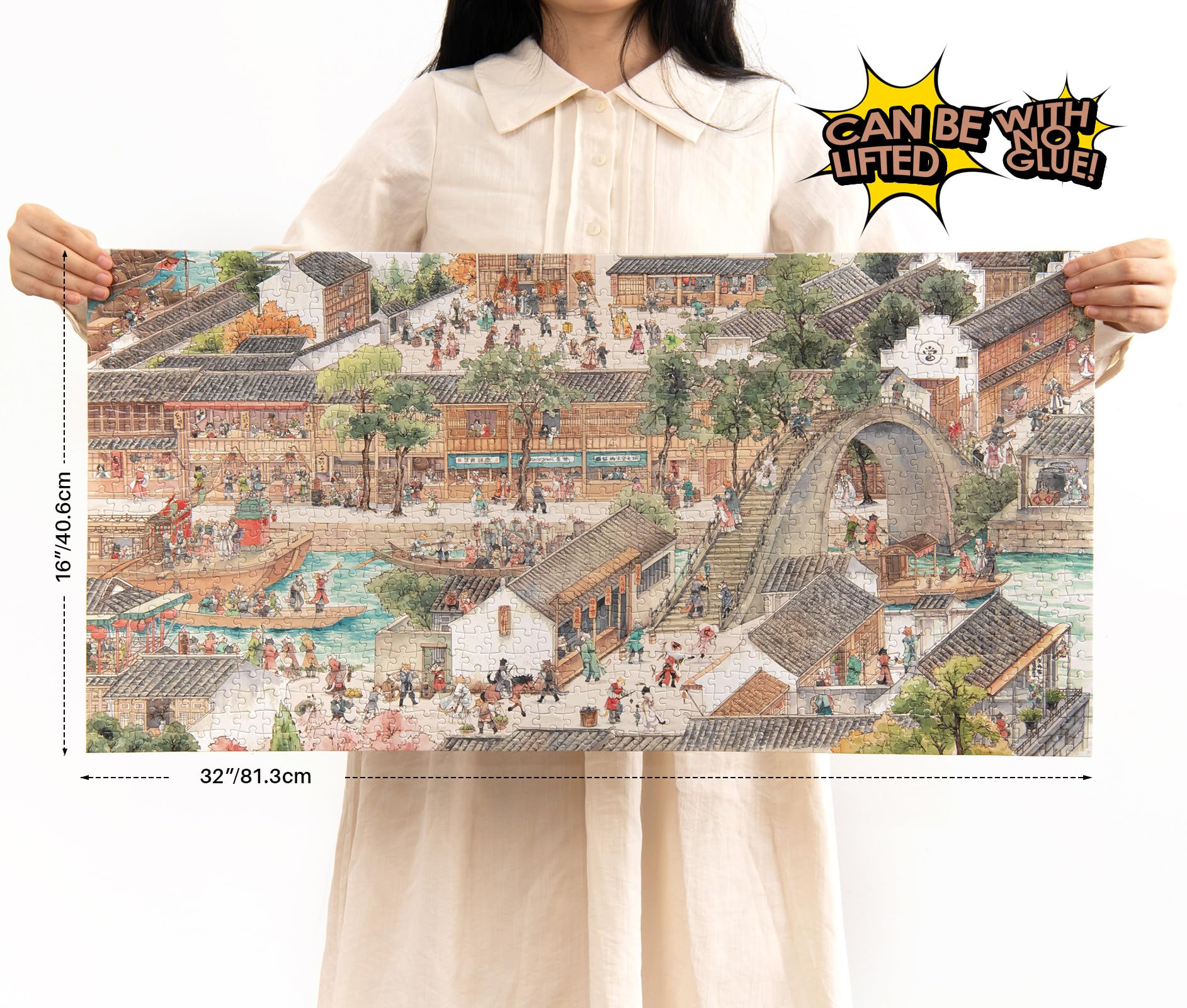View comparePuzzles For Adults 1000 Pieces, Momibook Jigsaw Puzzles Of Chinese Vintage Village Town Cat, Painting Image 81.3X40.6Cm(32''X16'
