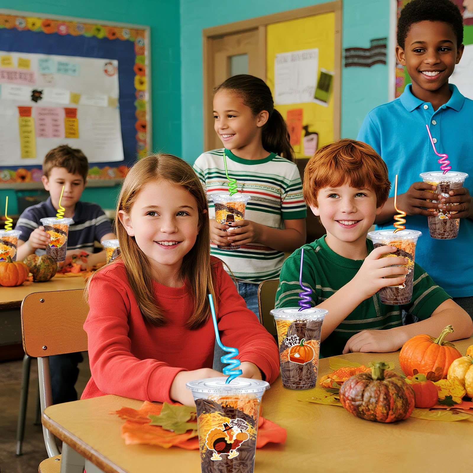 Features: Convenience Thanksgiving Classroom Gifts Kit: No last-minute shopping! Get 24 plastic cups with lids, 24 straws, 3 raffia bundles, and 24 stickers in one bundle. Assemble happy Thanksgiving gifts quickly by filling cups with treats, raffia, and a sticker for busy teachers or parents. Memorable Celebrations: Fill cups with raffia, sweets, and a sticker, then add a colorful straw for whimsy. Ideal as classroom gifts, game prizes, or party favors, they spark excitement for kids and adults alike. Transform any event into an unforgettable celebration! Specifications: Main Material: plastic Color: Plastic cups with lids: transparent Raffia: brown, yellow, orange Straws: orange, blue, pink, purple, green, yellow Size: Thanksgiving stickers: 7 x 6.1 cm/ 2.76 x 2.4 inches Plastic cups: 600 ml/ 20 oz Raffia: 30 g Package includes: 24 x Thanksgiving stickers 24 X Plastic cups 24 x Plastic lids 24 x Straws 3 x Raffia Notes: Manual measurement, please allow slight errors on size. The color may exist a slight difference due to different screen displays.