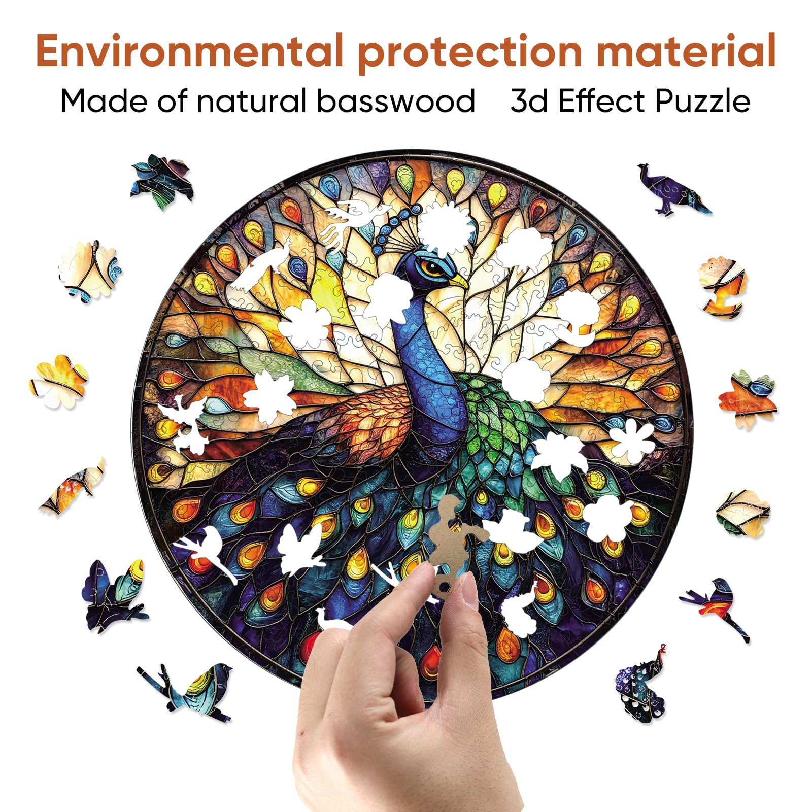 Qiuenisray Wooden Puzzles for mature-themeds Stained Glass Peacock Jigsaw Puzzles 200 Pieces Unique Shape mature-themed Puzzles Irregular Christmas Thanksgiving Gifts for Family Friend (11.2 x 11.2 in)