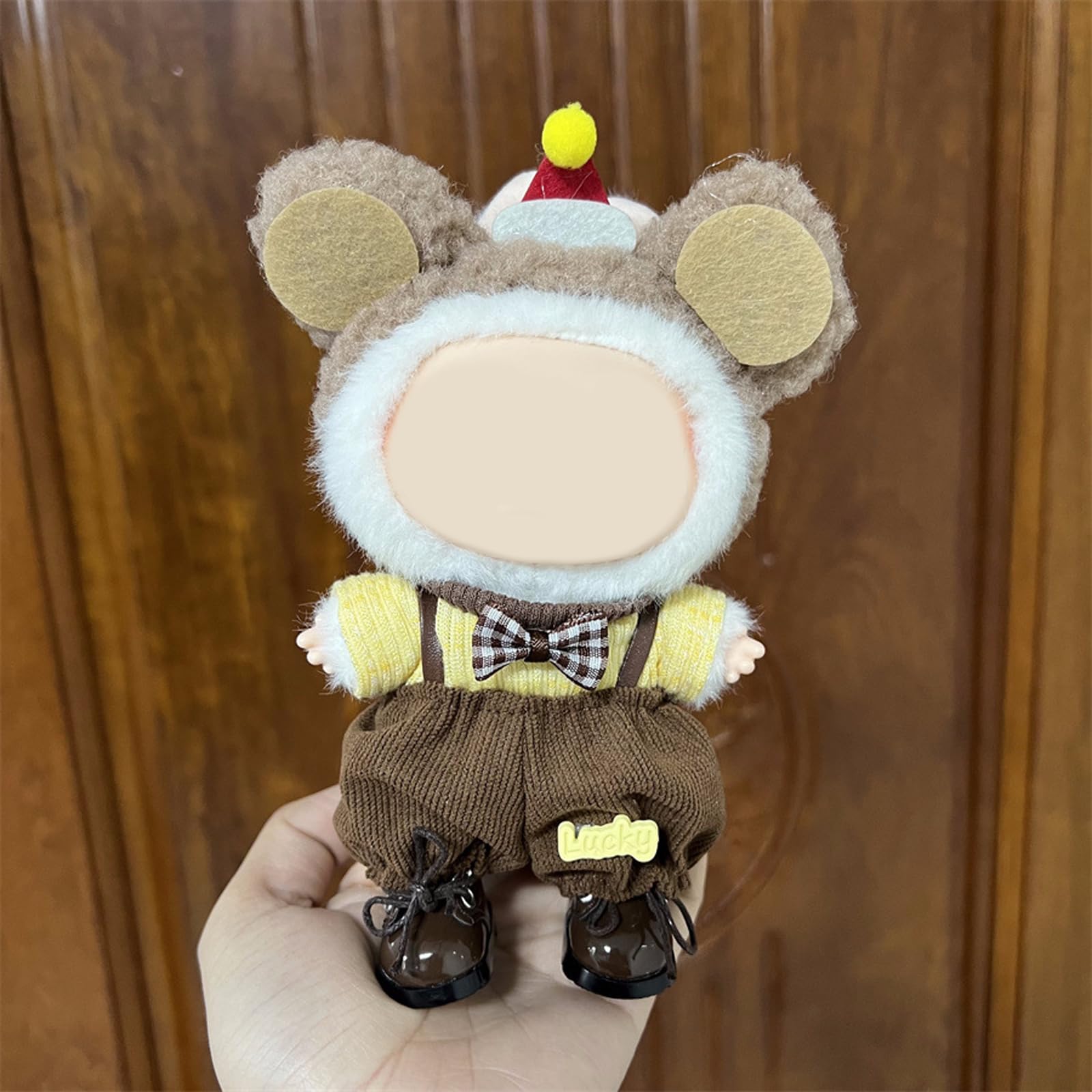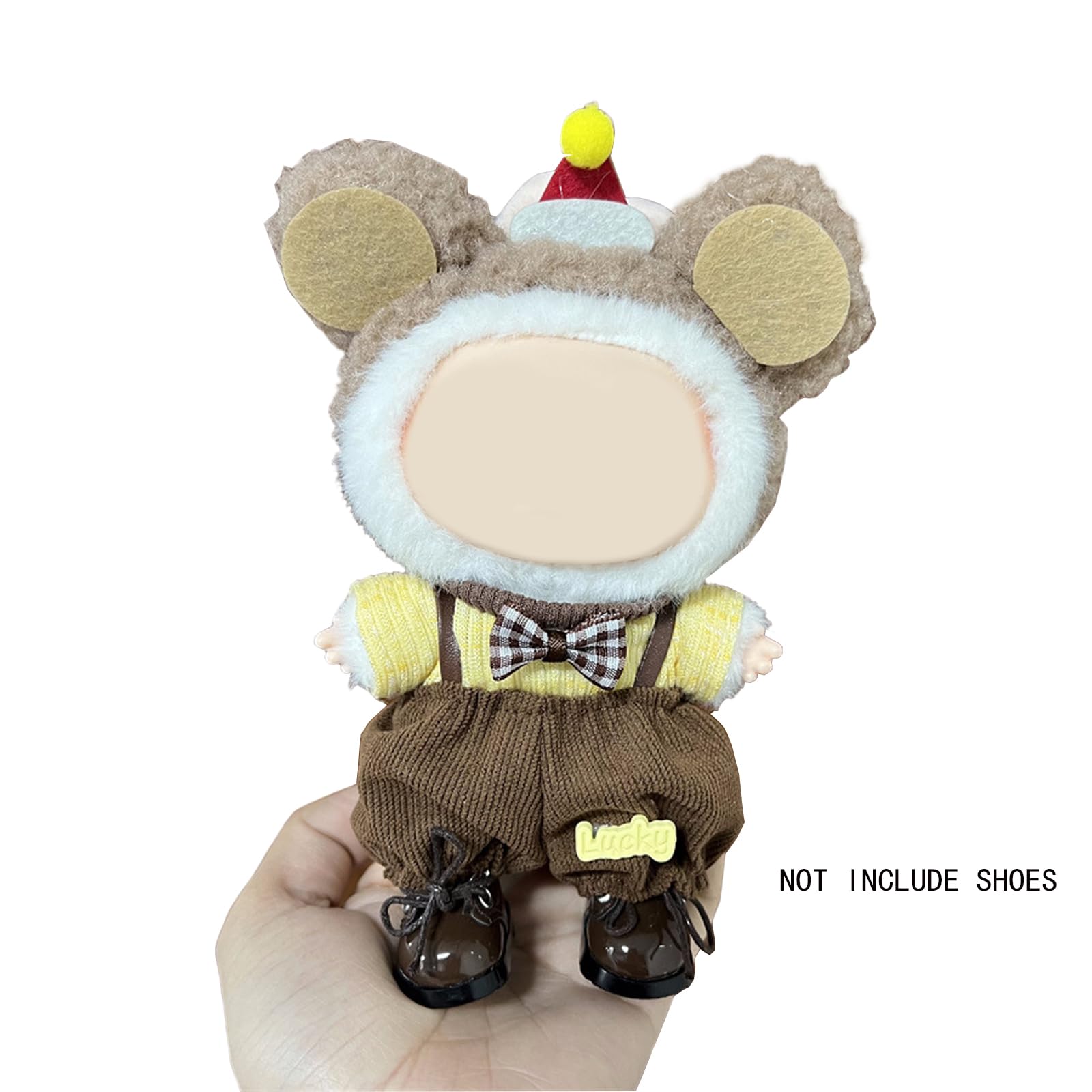 QIUTIMIY 17cm Doll Clothes 3-Piece-Set Clothing enhanced Outfit with Accessories-Birthday Headband+Top+Overall(NO Doll Included)