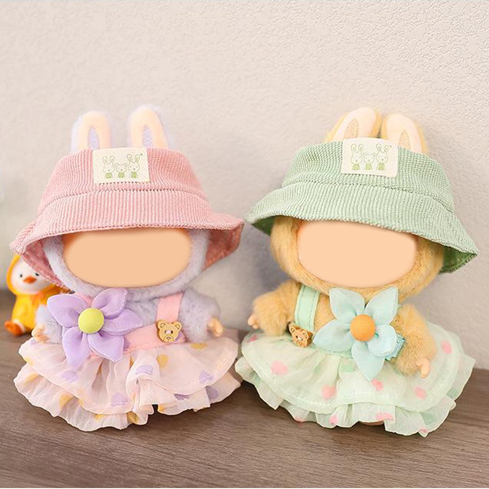 QIUTIMIY Clothes for Doll 17cm Doll Clothes 3-piece-set Doll Clothes enhanced Doll Outfit with Accessories-Birthday Green Hat+Dress+Flower(NO Doll Included)