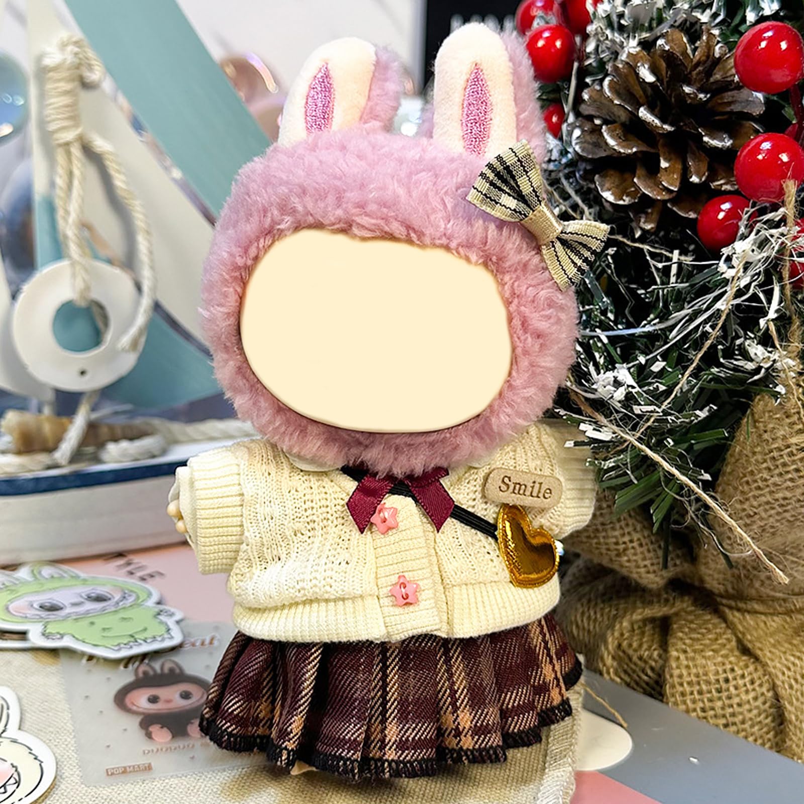 17cm Doll Clothes 5-piece-set Doll Clothes enhanced Doll Outfit with Accessories-Headdress+Sweater+Shirt+Pleated Skirt+Bag(NO Doll Included)