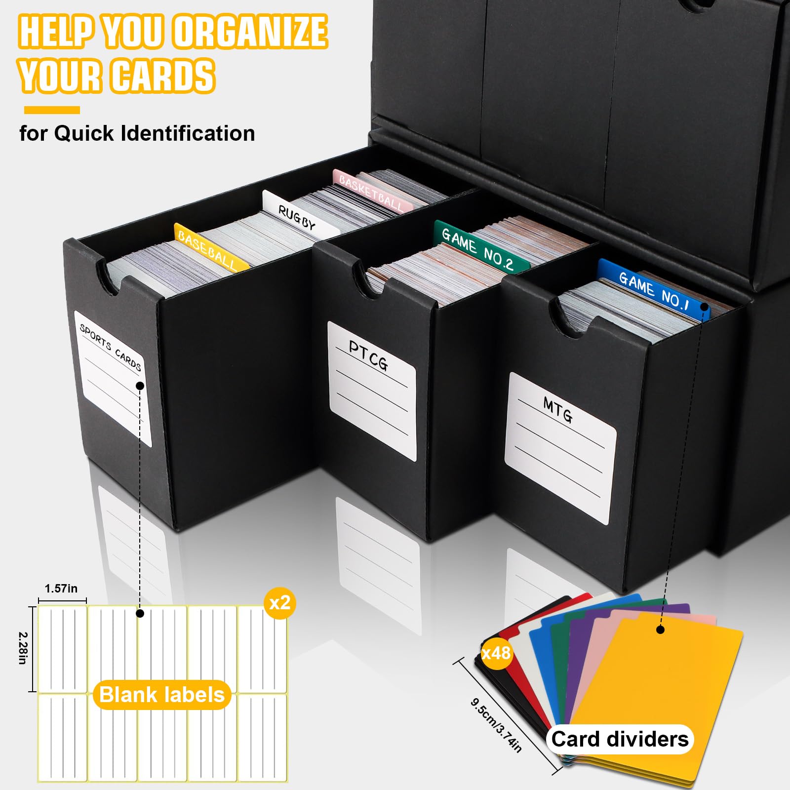 View compareQlouni Trading Card Storage Box, Includes 9-600 Ct Boxes & 48 Card Dividers, 9000+ Trading Card Organizer For Collectible Card G