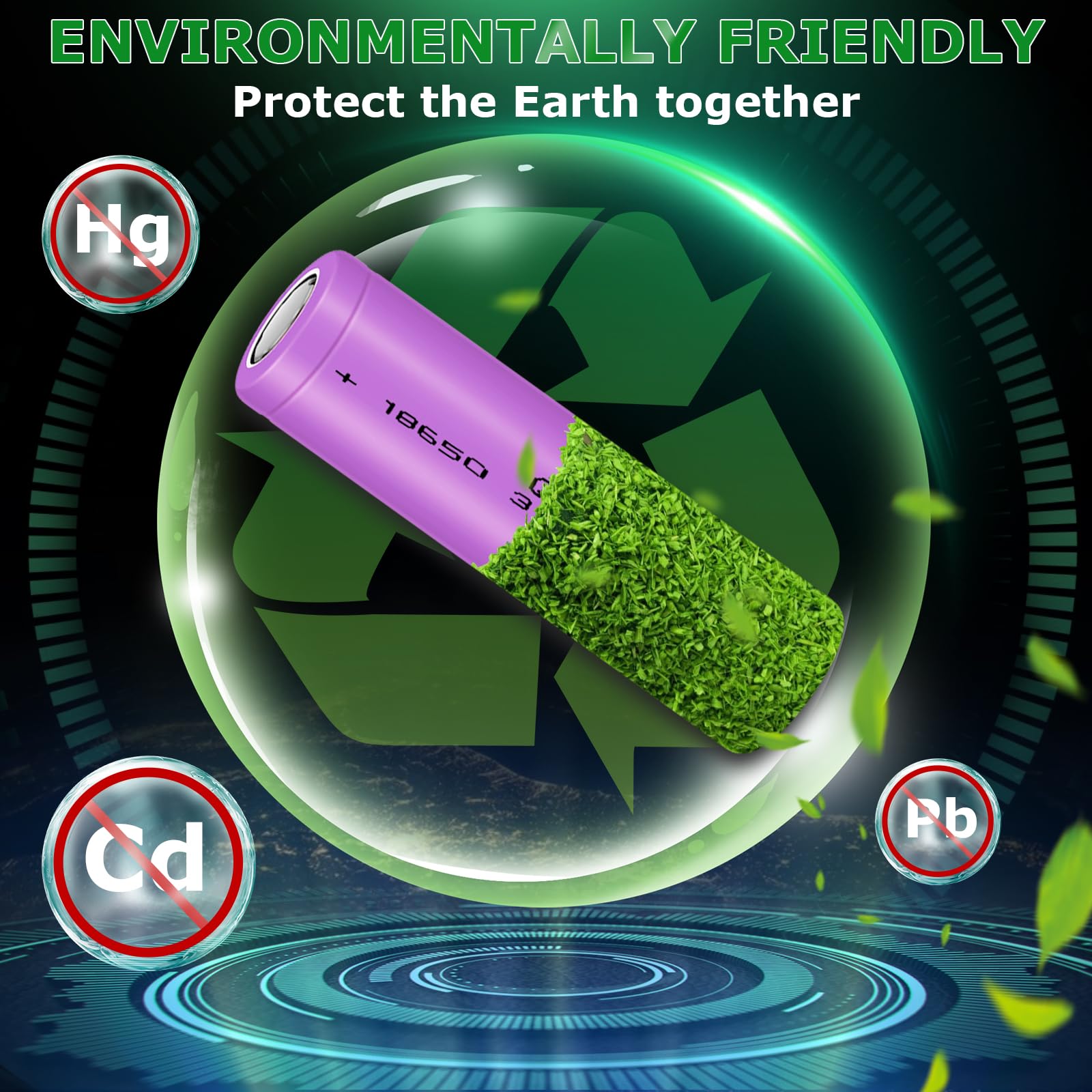 QOJH 4Pcs 3.7 Volt 18650 Rechargeable Battery, 18650 Battery 3500mAh Flat Top for Remote Control Toy, Headlamp, LED Flashlight, Mini Fans, Shaver (Purple)