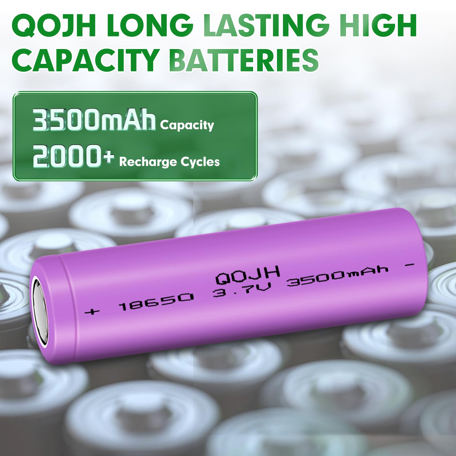 Qojh 4Pcs 3.7 Volt 18650 Rechargeable Battery, 18650 Battery 3500Mah Flat Top For Remote Control Toy, Headlamp, Led Flashlight,