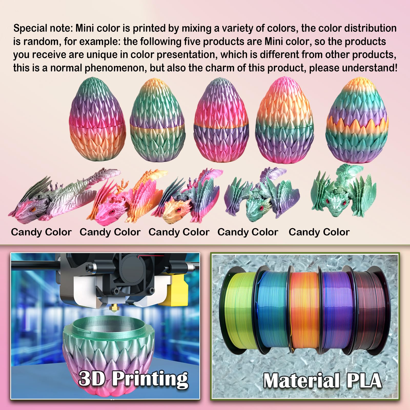 QOUXZ Dynamic 3D Printed Dragon Eggs with Dragon Inside,Wings Movable Feathered Wyvern,Full Articulated Crystal Flying Fidget Ar