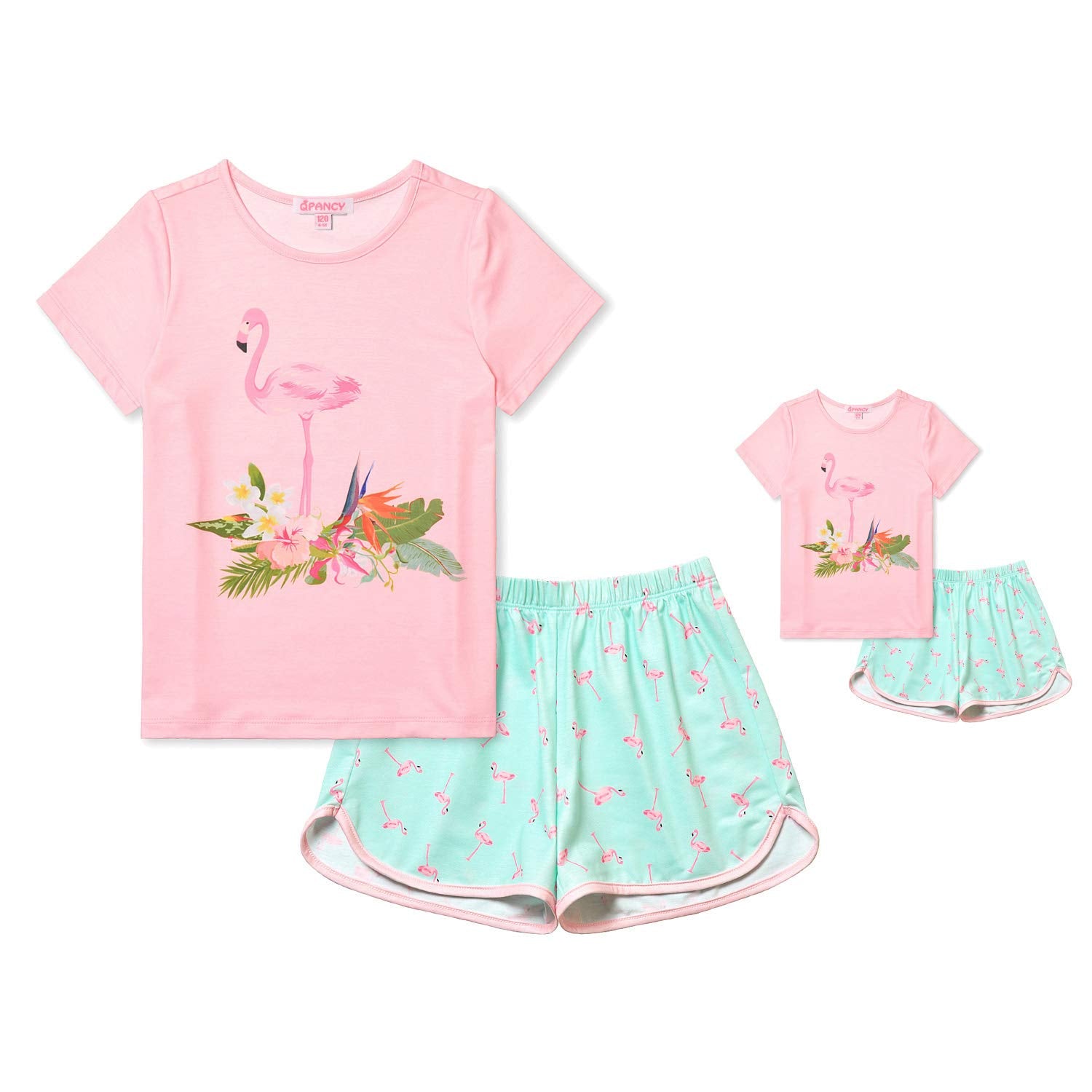 Qpancy Matching Girls & Dolls Pajamas Flamingo Pj Sets Short Sleeve Sleepwear 4T 5T