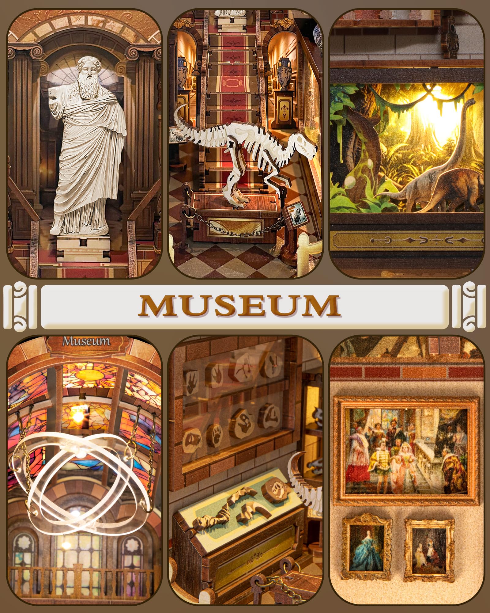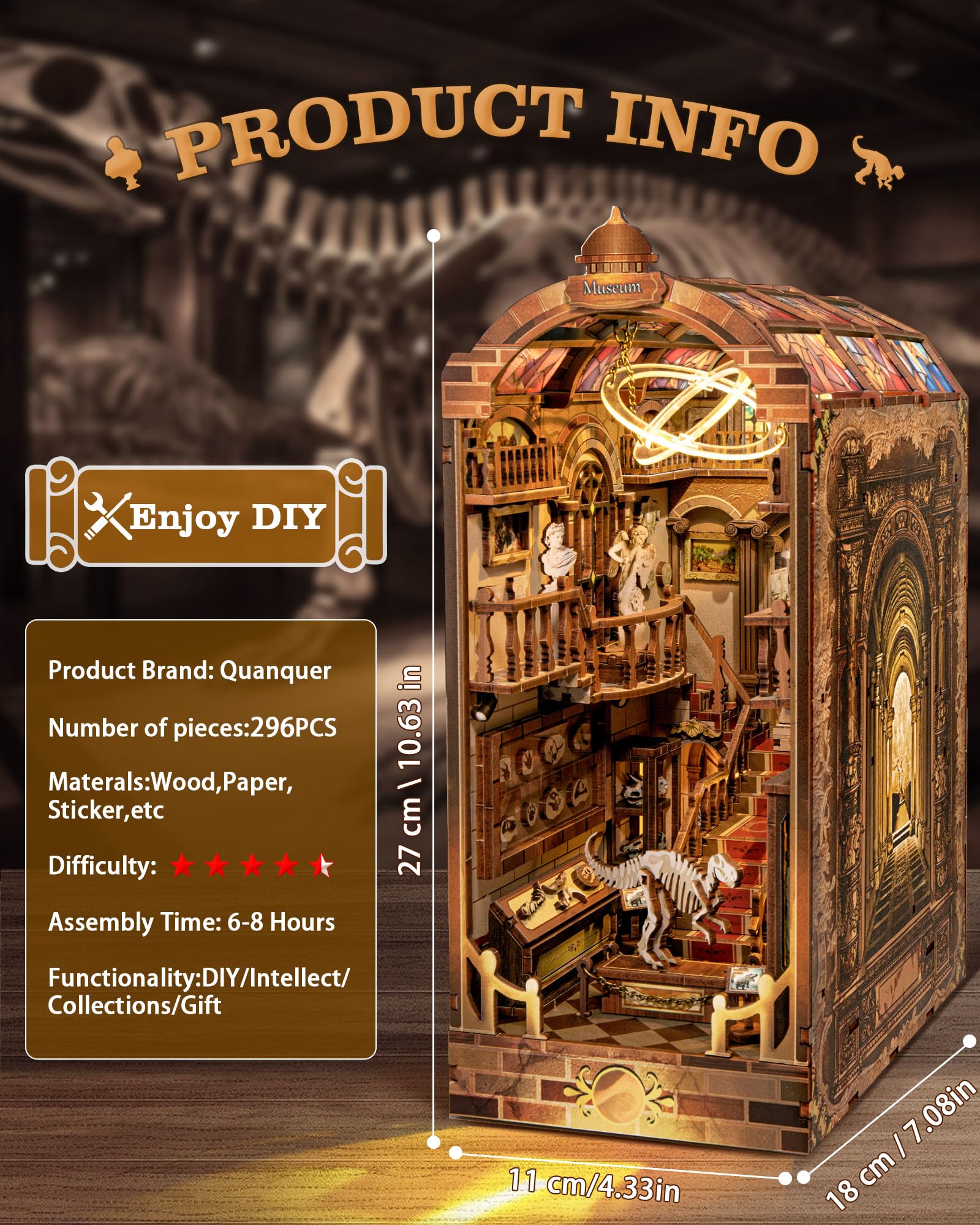 Quanquer Diy Book Nook Kit:Diy Dollhouse Booknook With Led Light - 3D Wooden Puzzle Miniature House Kits - Creative Diy Crafts For Adults - Bookshelf Insert Decor - Gifts Friends Festival(Museum)