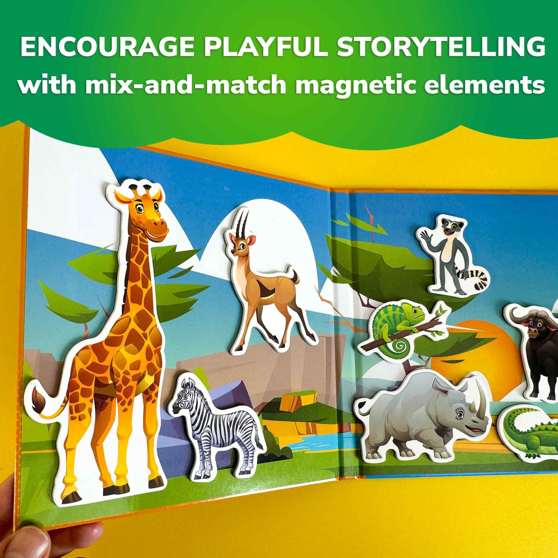 Make every trip engaging with QUOKKA's travel magnetic puzzle, designed for toddlers and kids! With 20+ colorful animal magnets and an extra-long fold-out play scene, kids can enjoy endless storytelling and creative play on the go. Strong magnets ensure pieces stay secure, making this compact lightweight book perfect for car rides, airplanes, or family trips. Encouraging fine motor skills, hand-eye coordination, and vocabulary building, its ideal for toddlers ages 1-3 and preschoolers ages 3-5. A must-have kids' travel toy that blends learning and fun, providing screen-free entertainment parents love!