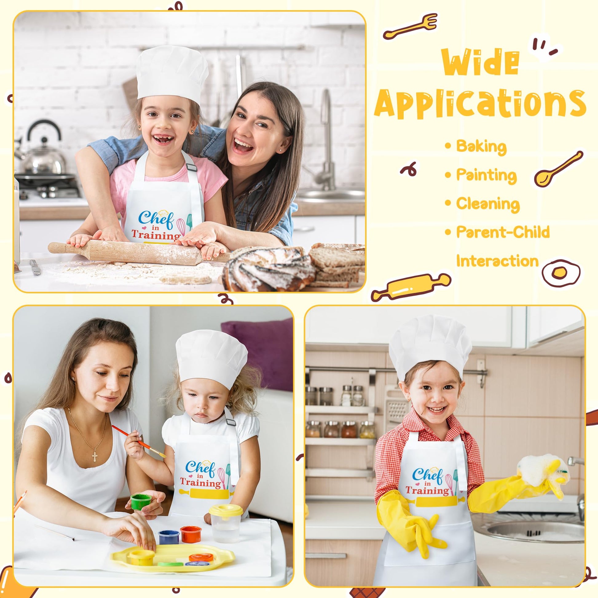 - Q: What are the dimensions of the apron and chef hat? A: The apron measures 18 x 20.7 inches (46-52.5cm), and the chef hat measures 9.4 x 10.6 inches (24-27cm). This size range is suitable for most children, ensuring they can comfortably wear them during their culinary adventures.